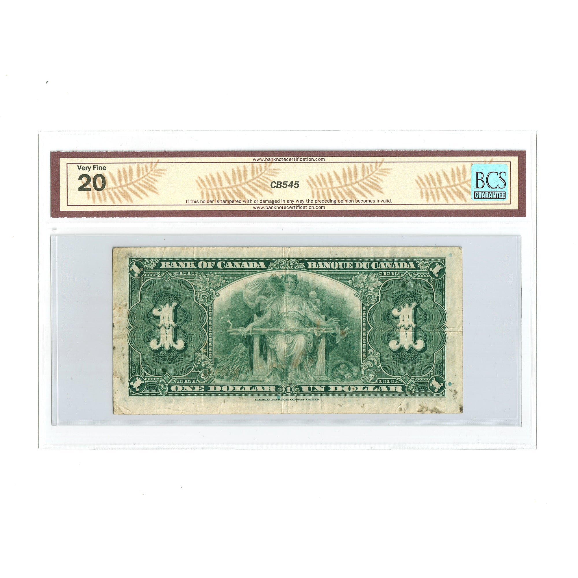BC-21b 1937 Canada $1 Gordon-Towers, Narrow Panel, H/A, BCS Certified VF20 (residue, stains)