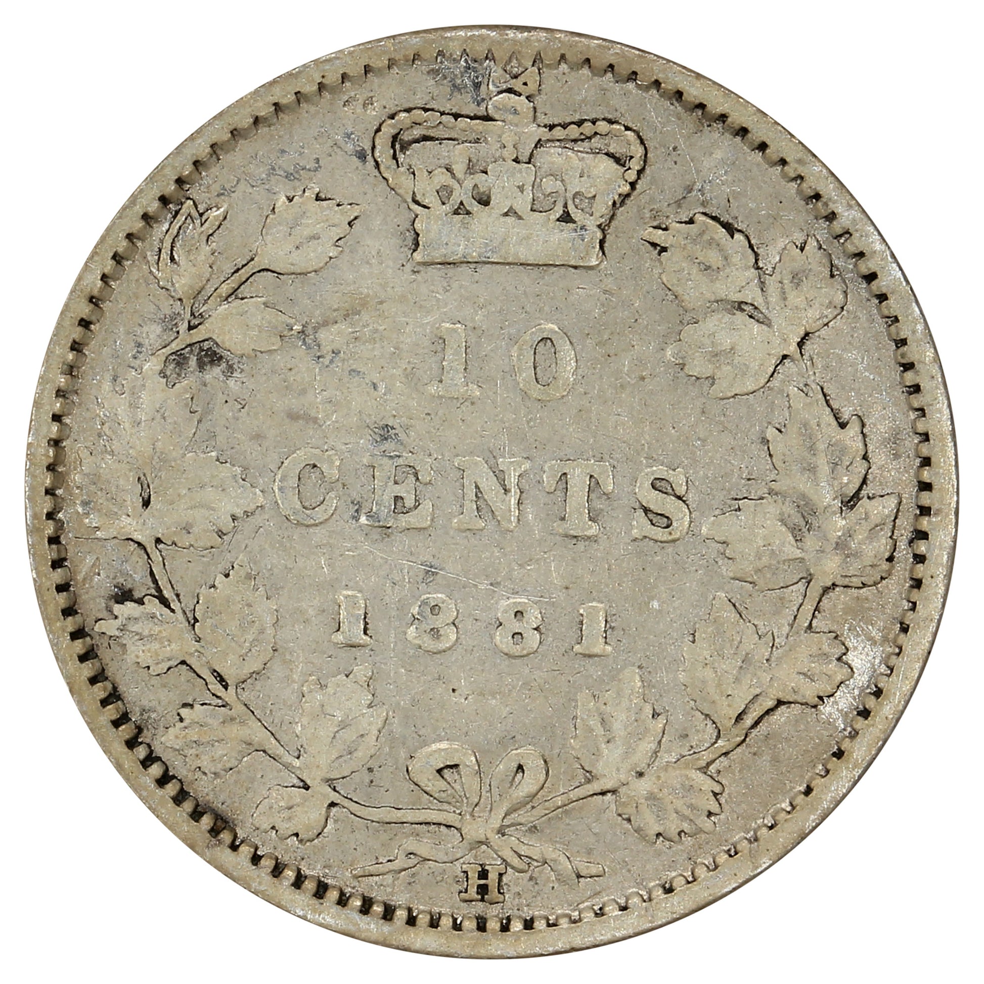 1881H Obv. 2 Canada 10-cents F-VF (F-15) Impaired
