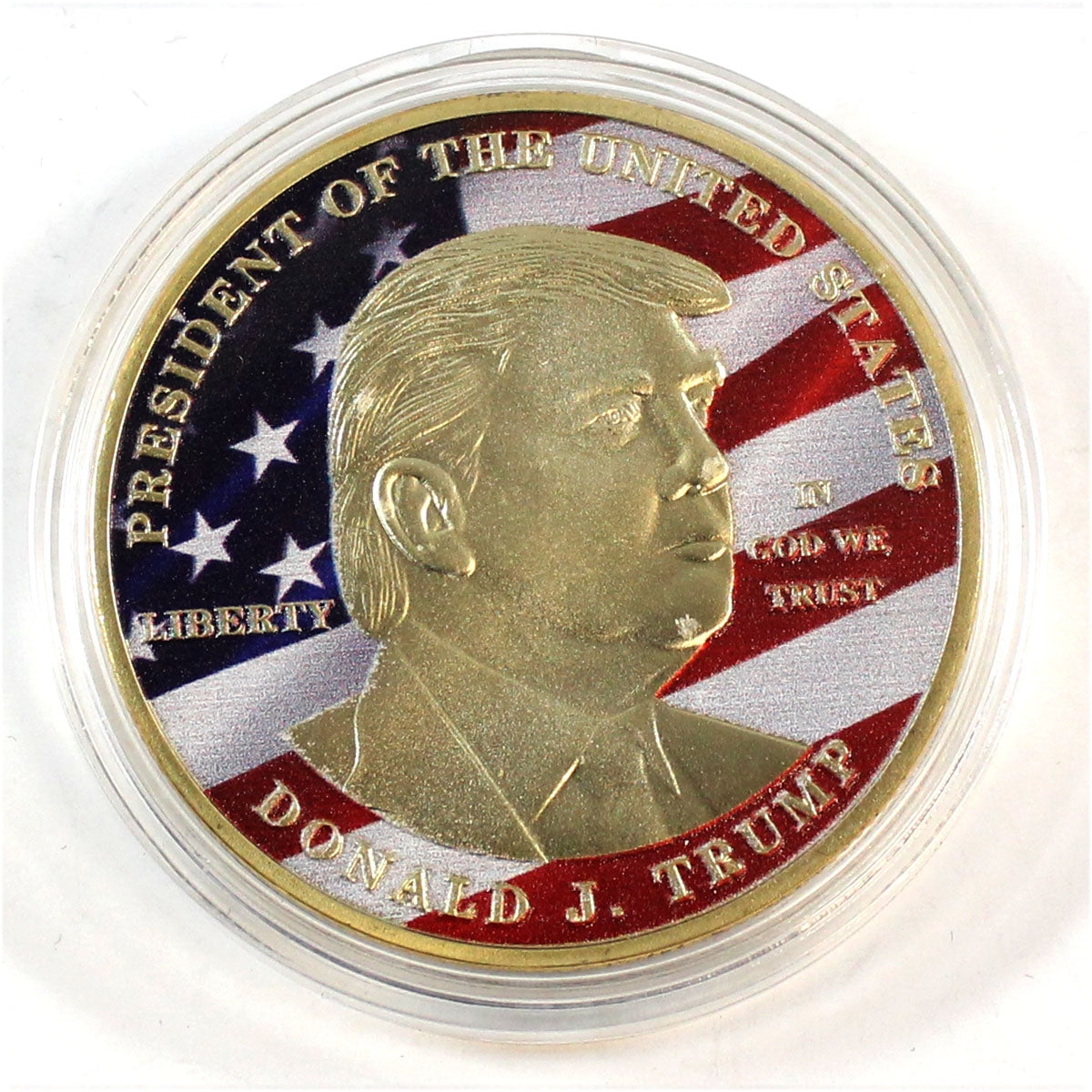 Donald J. Trump Presidential Gold Coloured Colourized Medallion. Image is an example of what you will receive. Medallions may come with mild impairments, ie. toning, scuff marks, and/or scratched.
