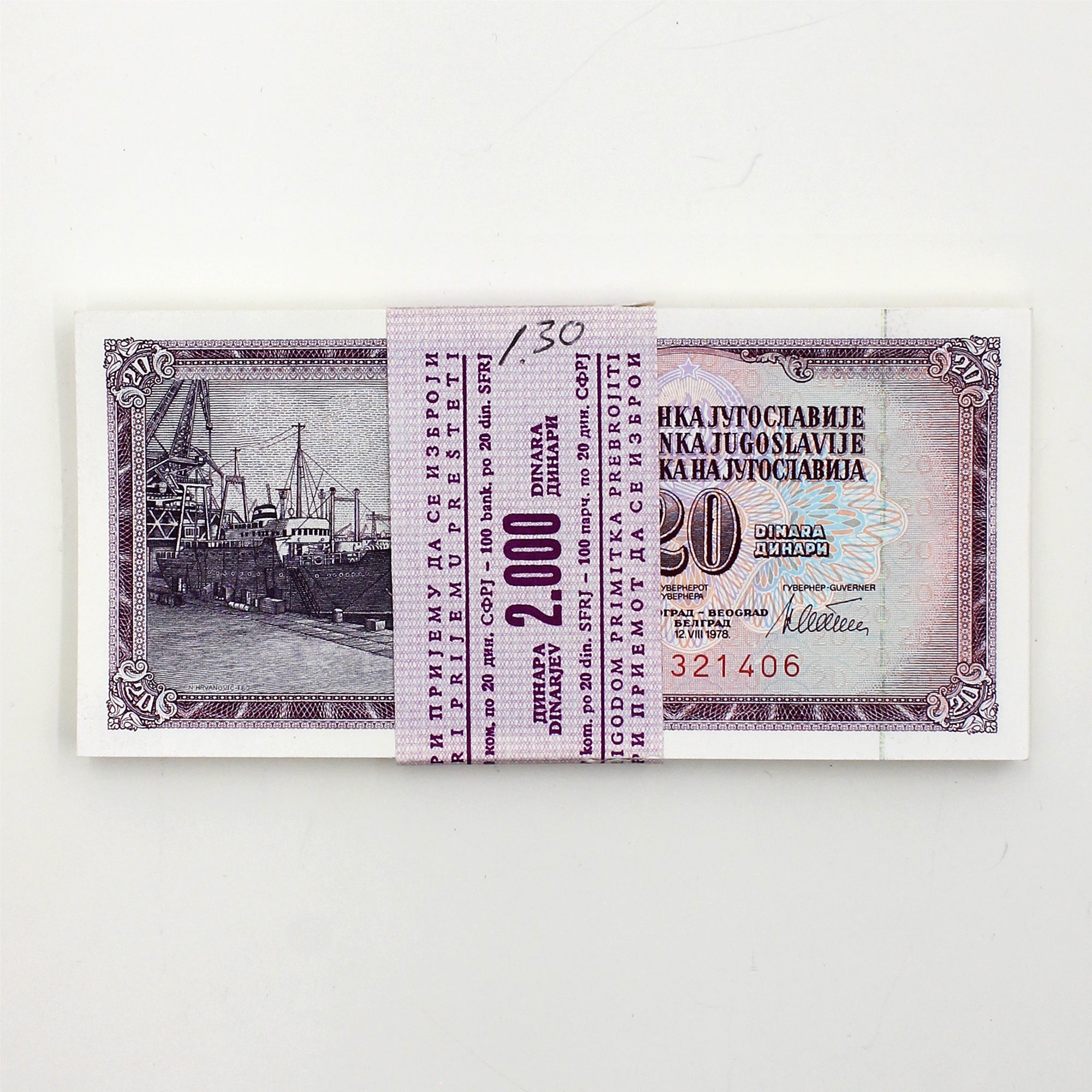 (Bundle of 96) Yugoslavia 1978 20 Dinar Consecutive Notes, 96pcs