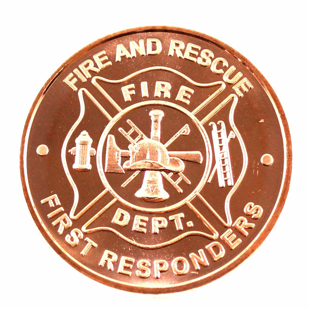 Pure Copper 1oz. .999 Fine - Fire Dept. Fire And Rescue - Copper14