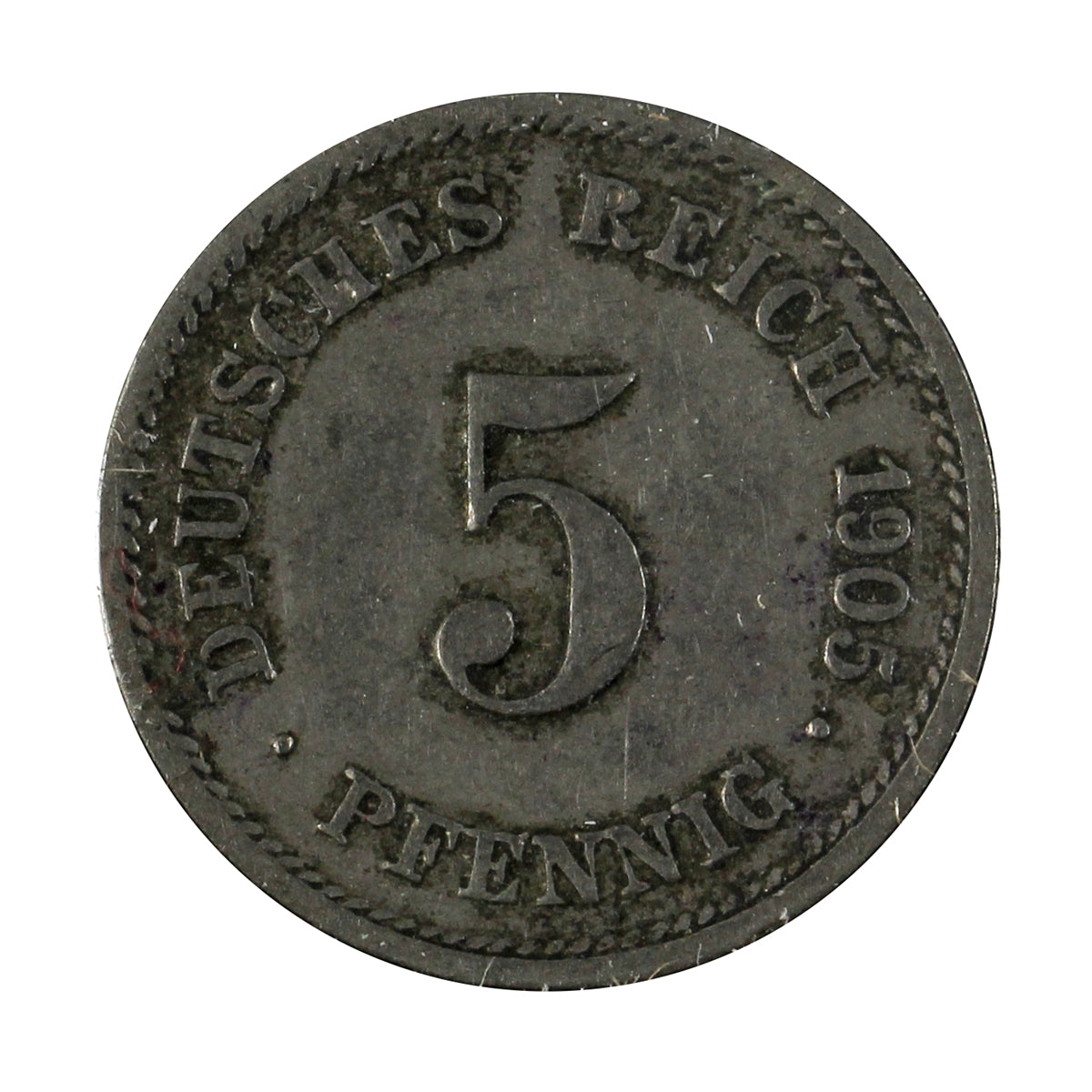 German Empire 1905G 5 Pfennig Extra Fine (EF-40)