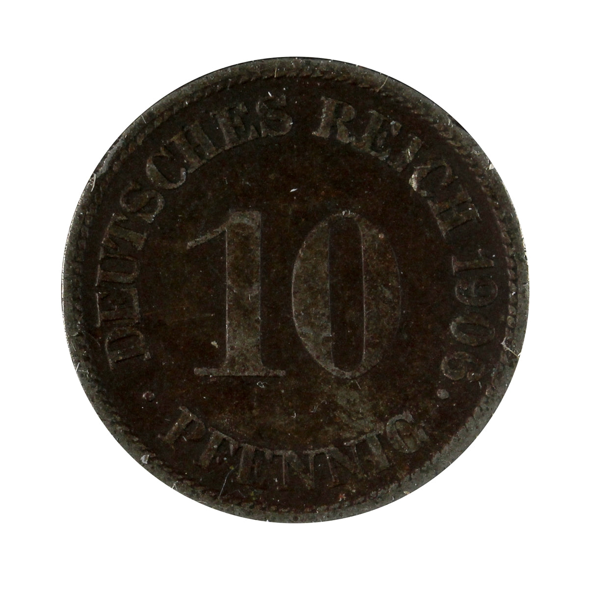 German Empire 1906G 10 Pfennig Extra Fine (EF40)