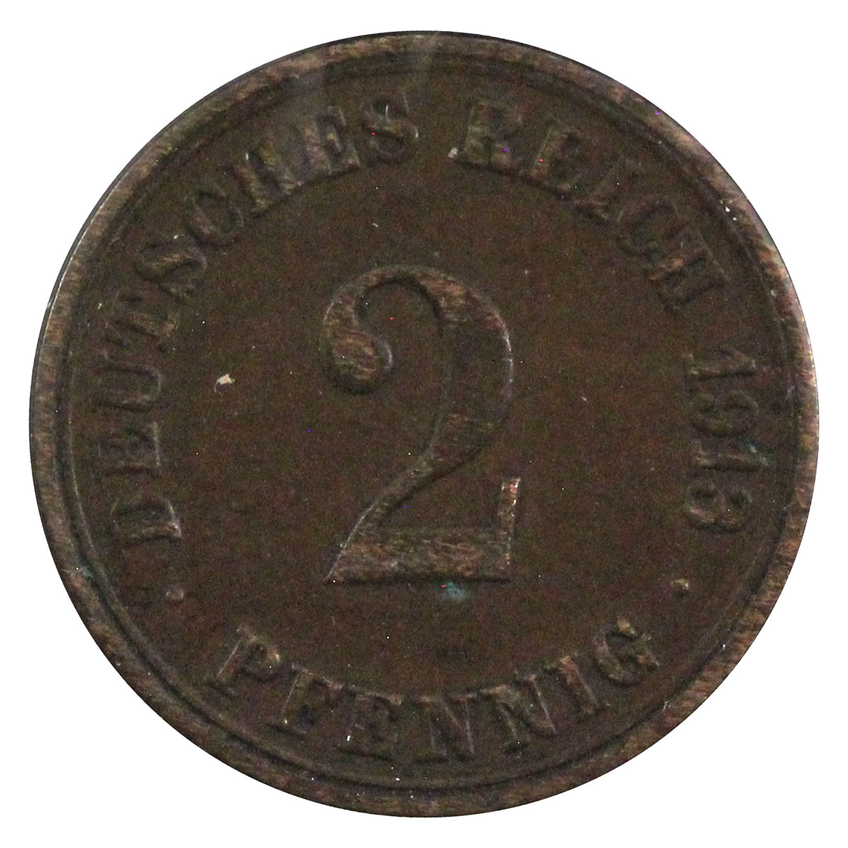 German Empire 1913A 2 Pfennig Almost Uncirculated (AU50)