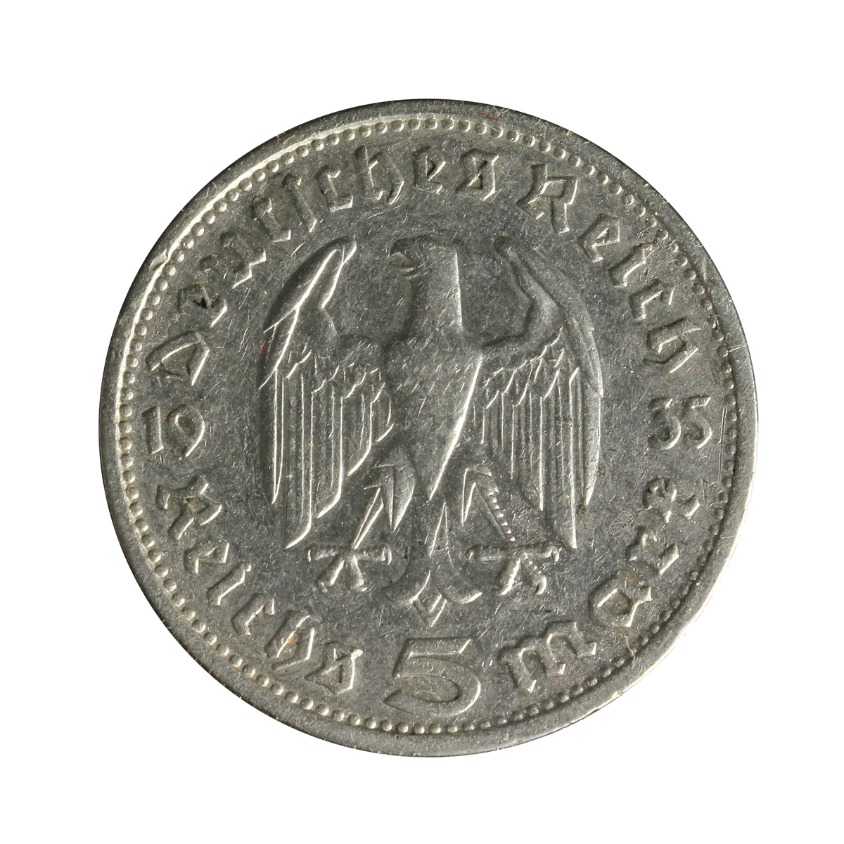 German Third Reich 1935G Hindenburg 5 Marks Extra Fine (EF40)