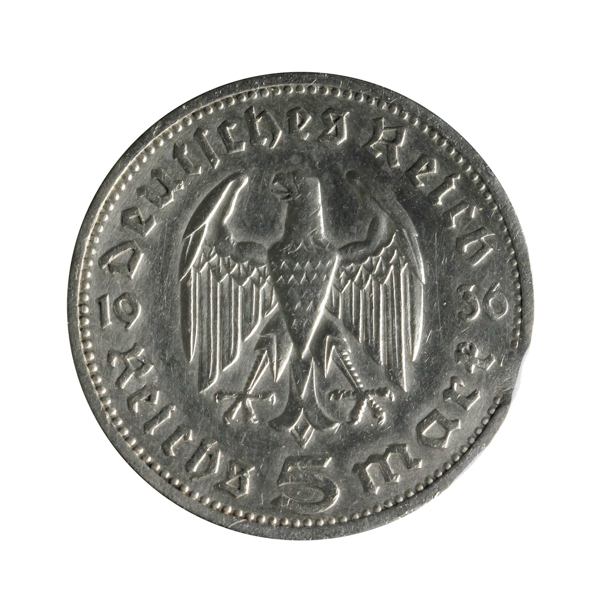 German Third Reich 1936E Hindenburg 5 Marks Extra Fine (EF-40)