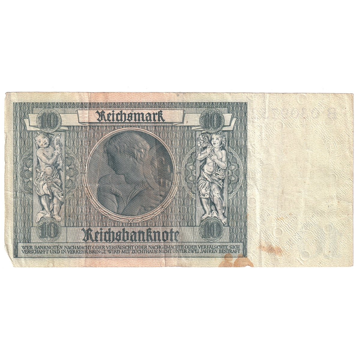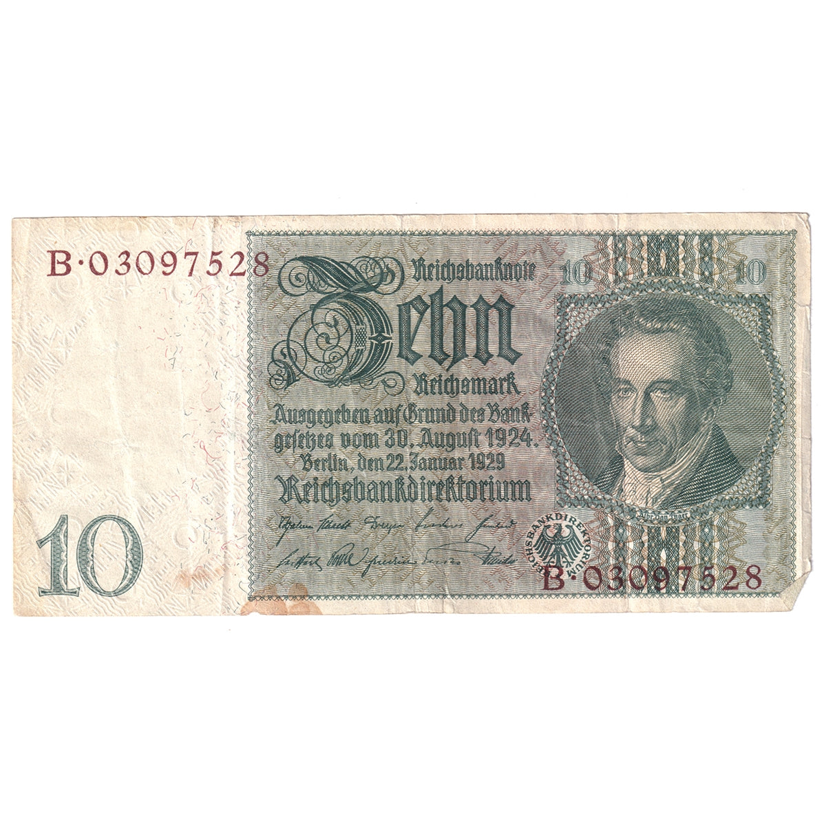 Germany Note, 1929 10 Reichsmark, Pick #180b, VF (Stain)