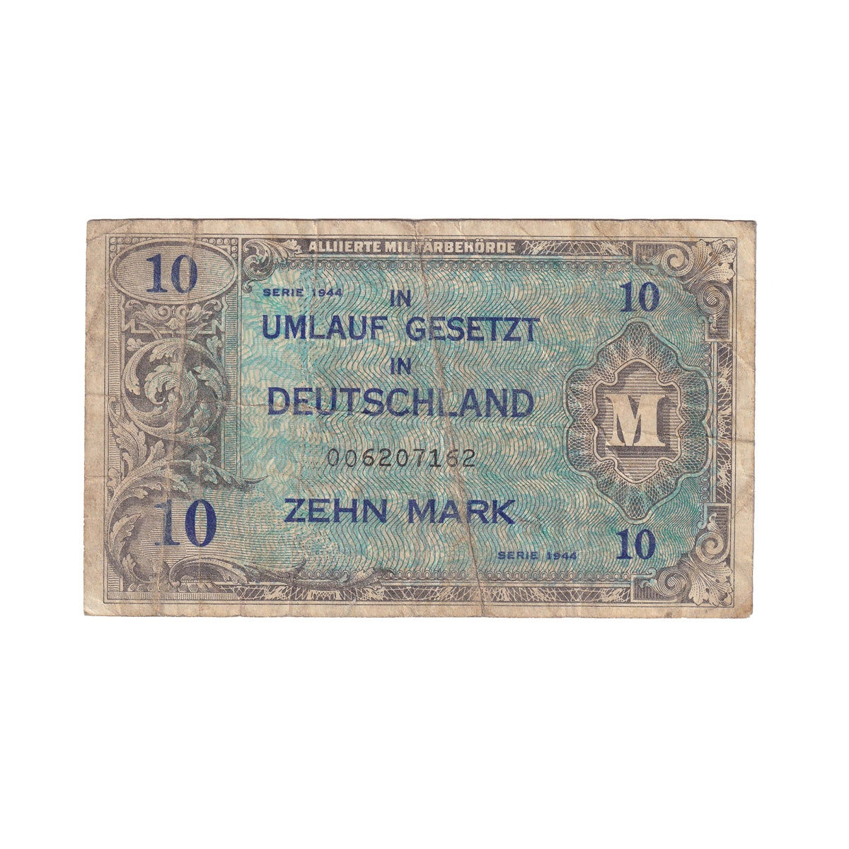 Germany Note, 1944 10 Mark, 9 Digit with F, Pick #194a, VF. Image is an example of what you will receive.