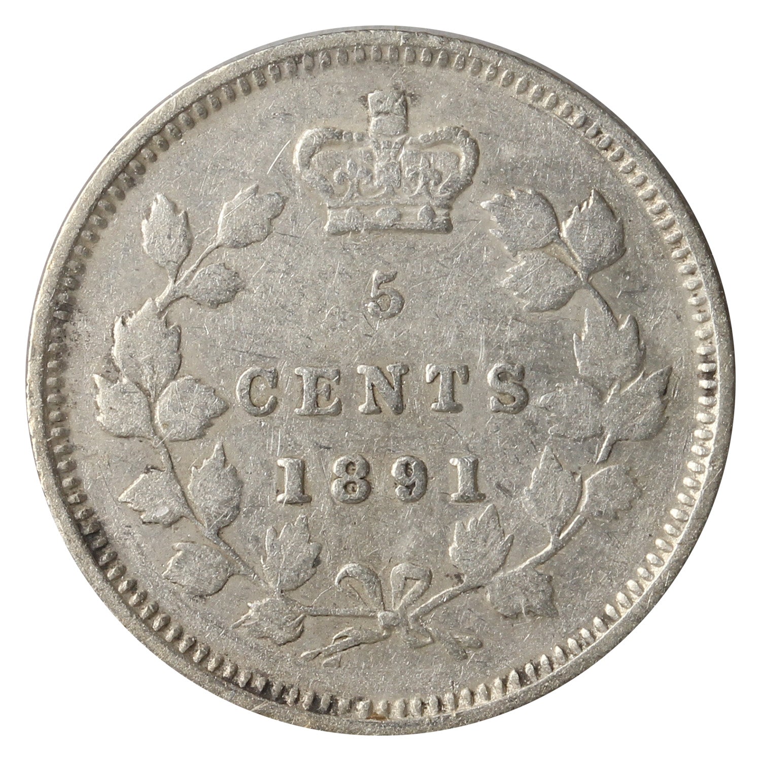 1891 Obv. 5 Canada 5-Cents Very Fine (VF20) Scratched, Cleaned, or Impaired