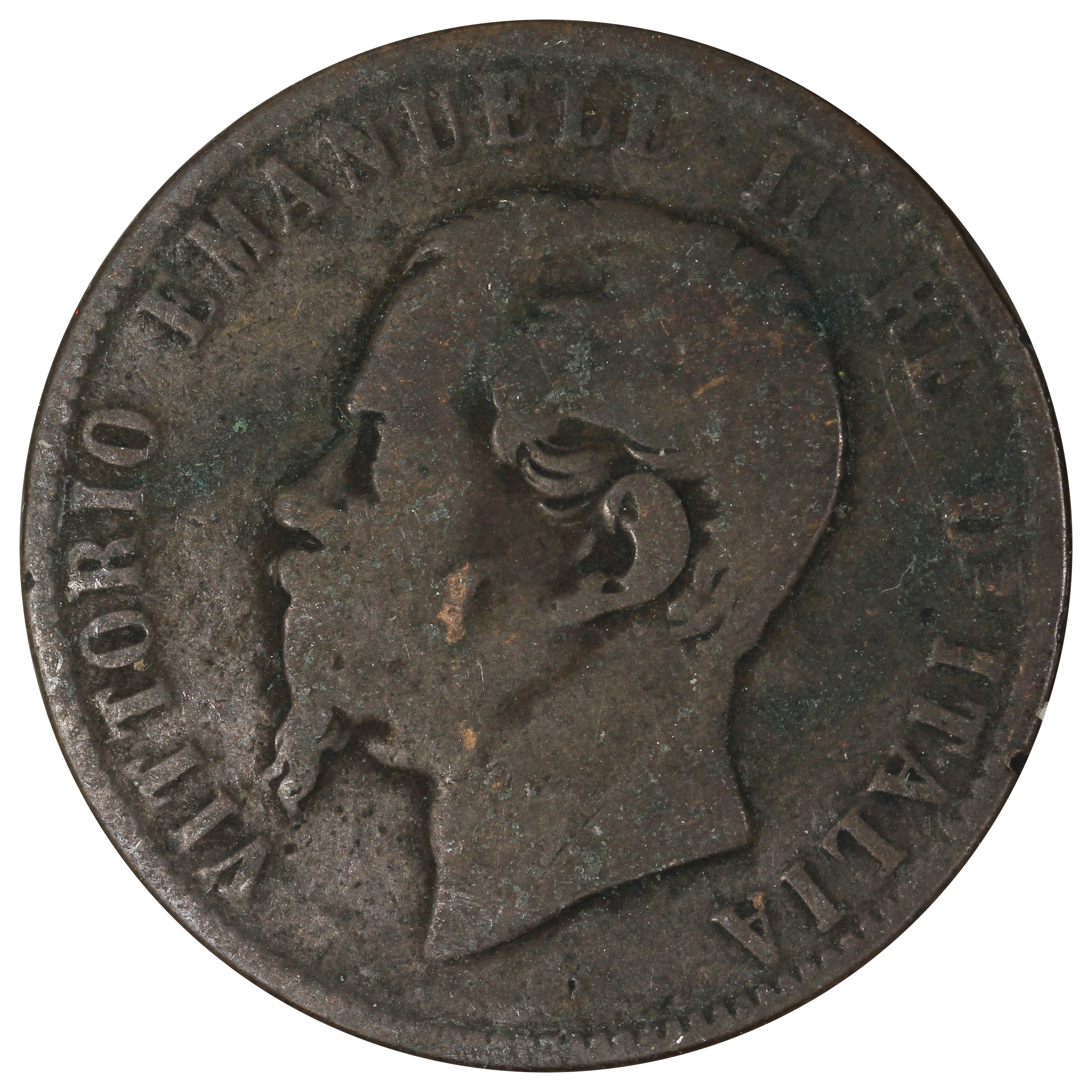 Obverse: Head of King Vittorio Emanuele II facing left, with the engraver's name below the neck.