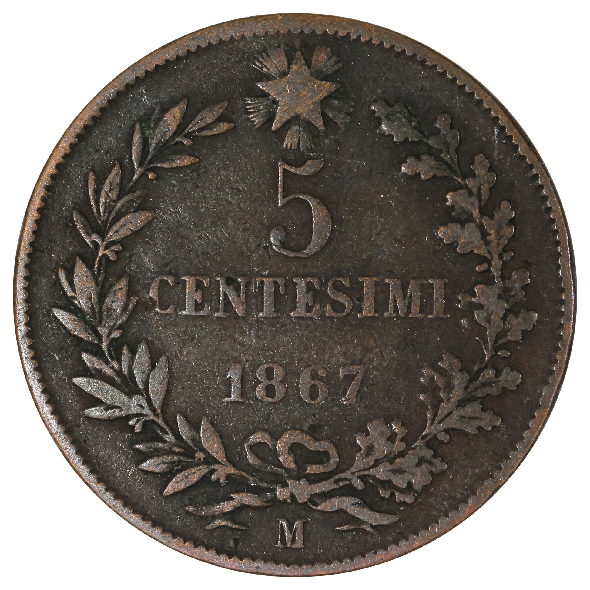 Italy 1867M 5 Centesimi Very Fine (VF-20)