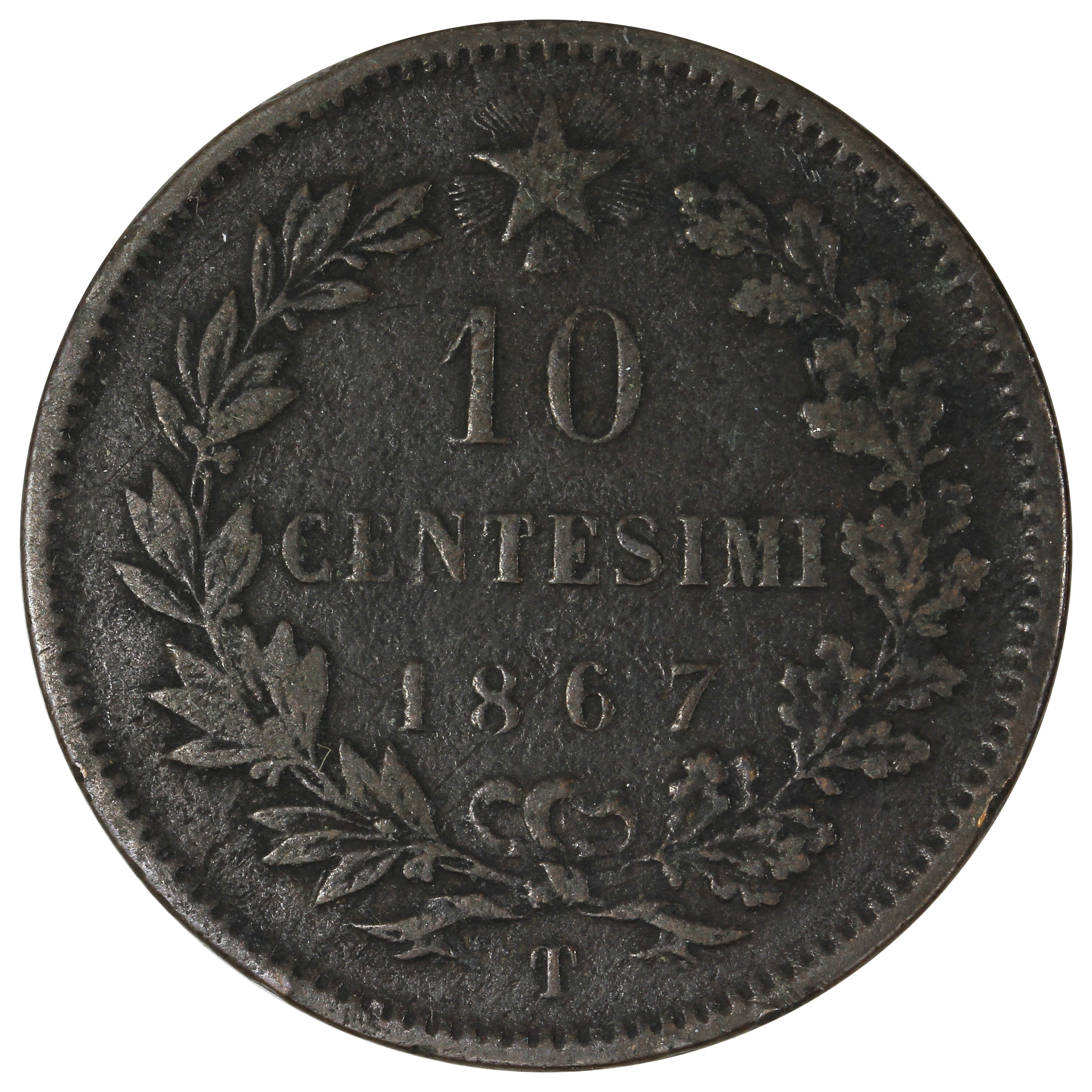 Italy 1867T 10 Cent Very Fine (VF-20)