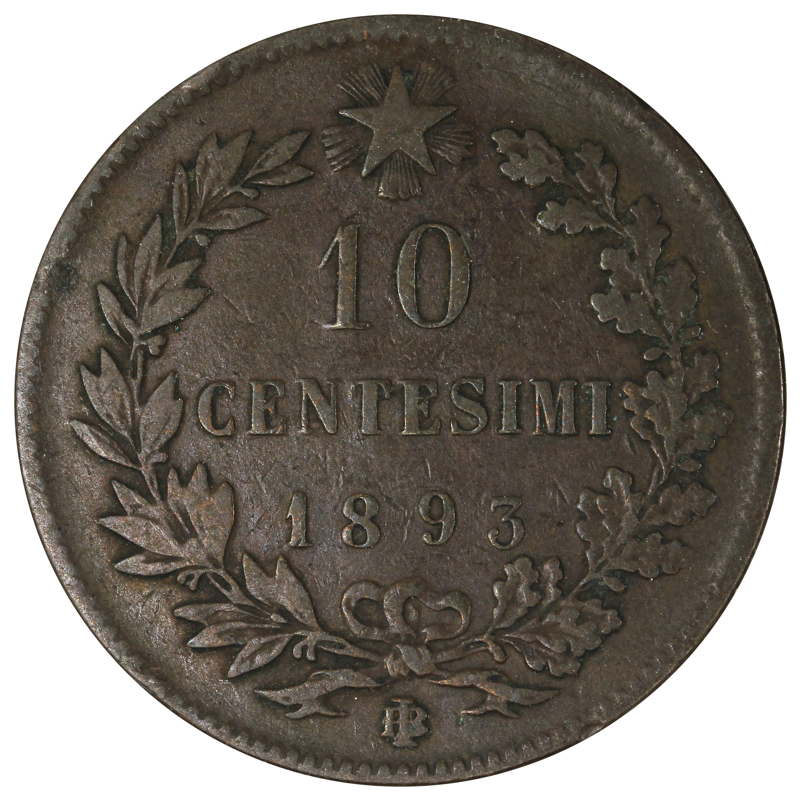 Italy 1893BI 10 Centesimi VF-EF (VF-30)