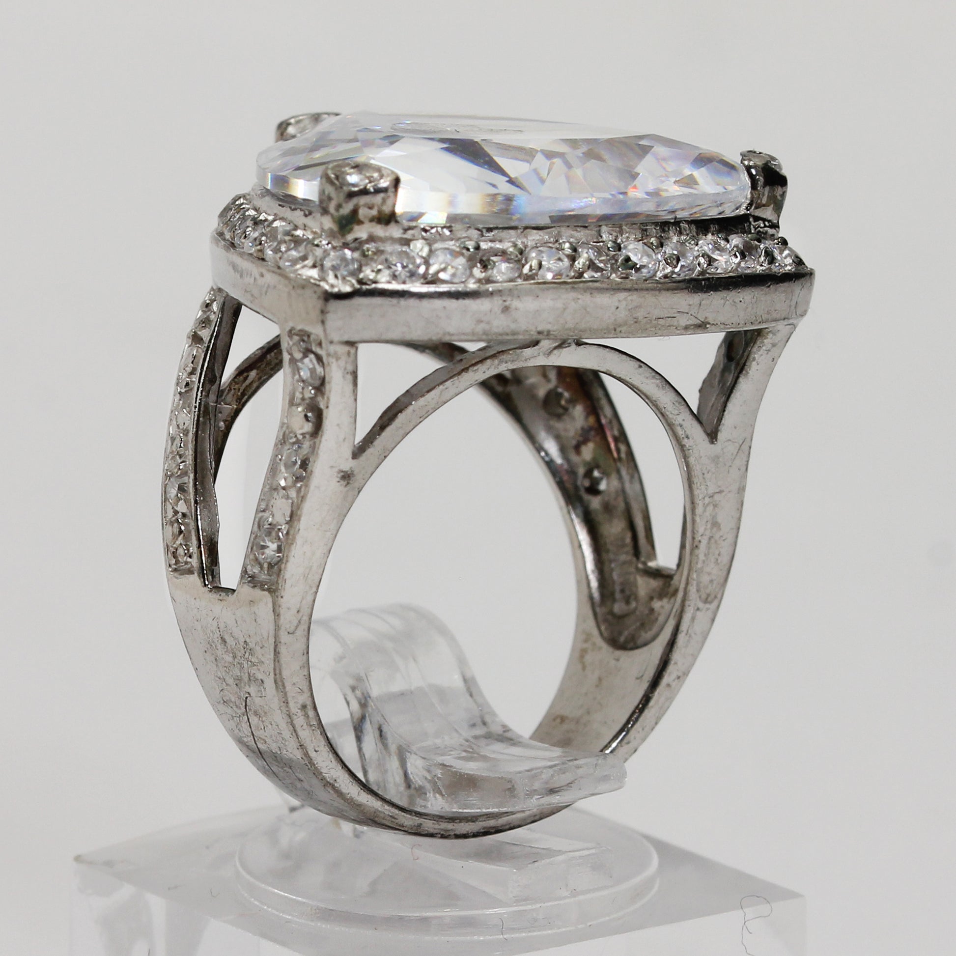 Sterling Silver Triangle Halo Ring - Size 6