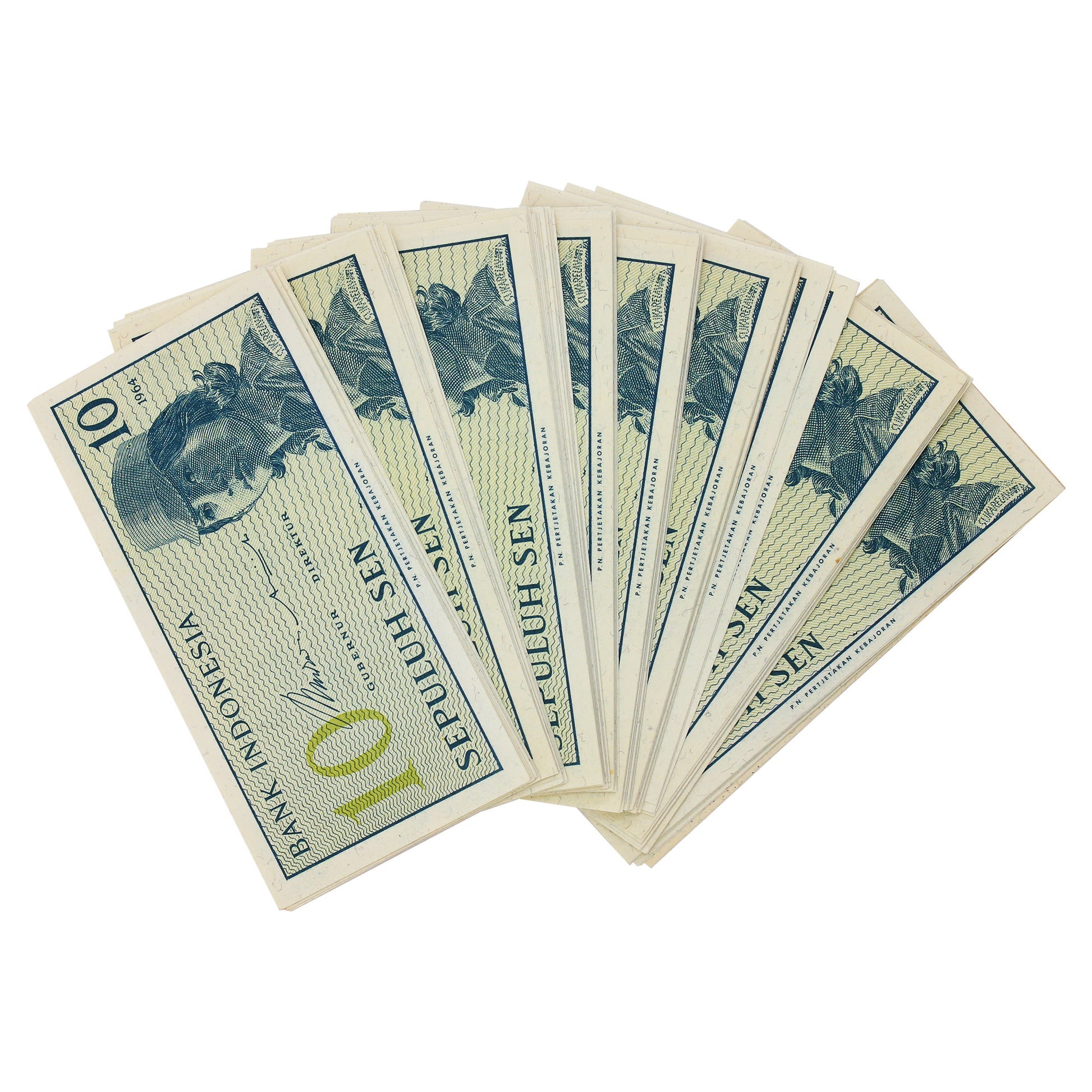 1964 Indonesia Original Bundles of 100 Notes, 10 Sepuluh Sen.