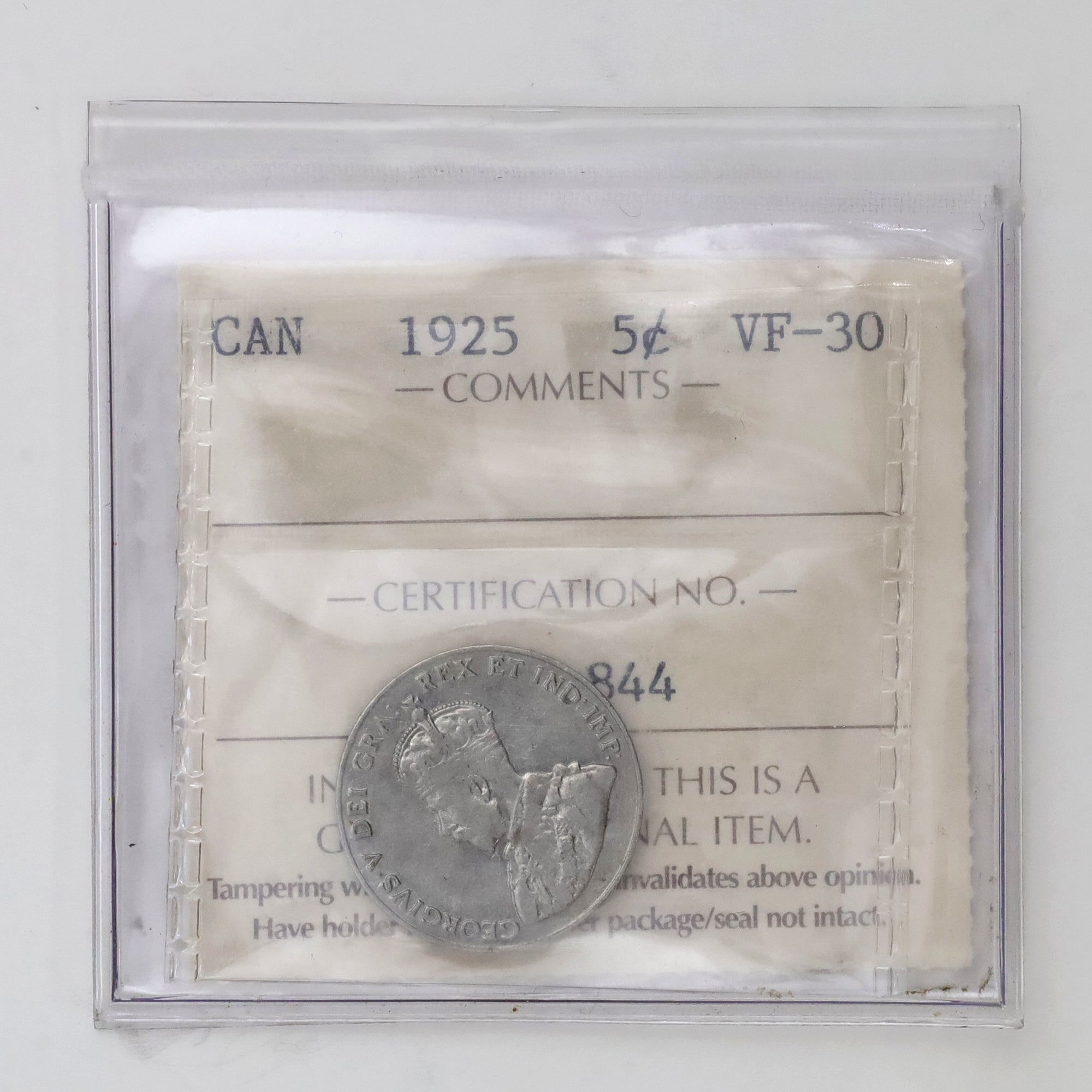 1925 Canada 5-cents ICCS Certified VF30 (Scratched)