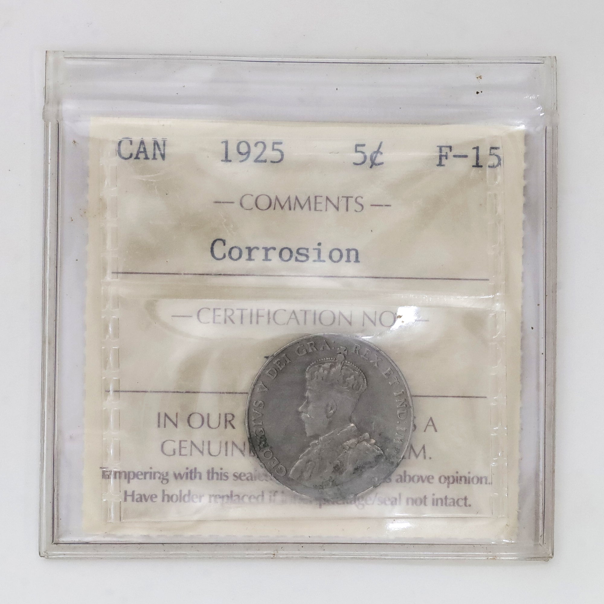 1925 Canada 5-cents ICCS Certified F15 (Corrosion)