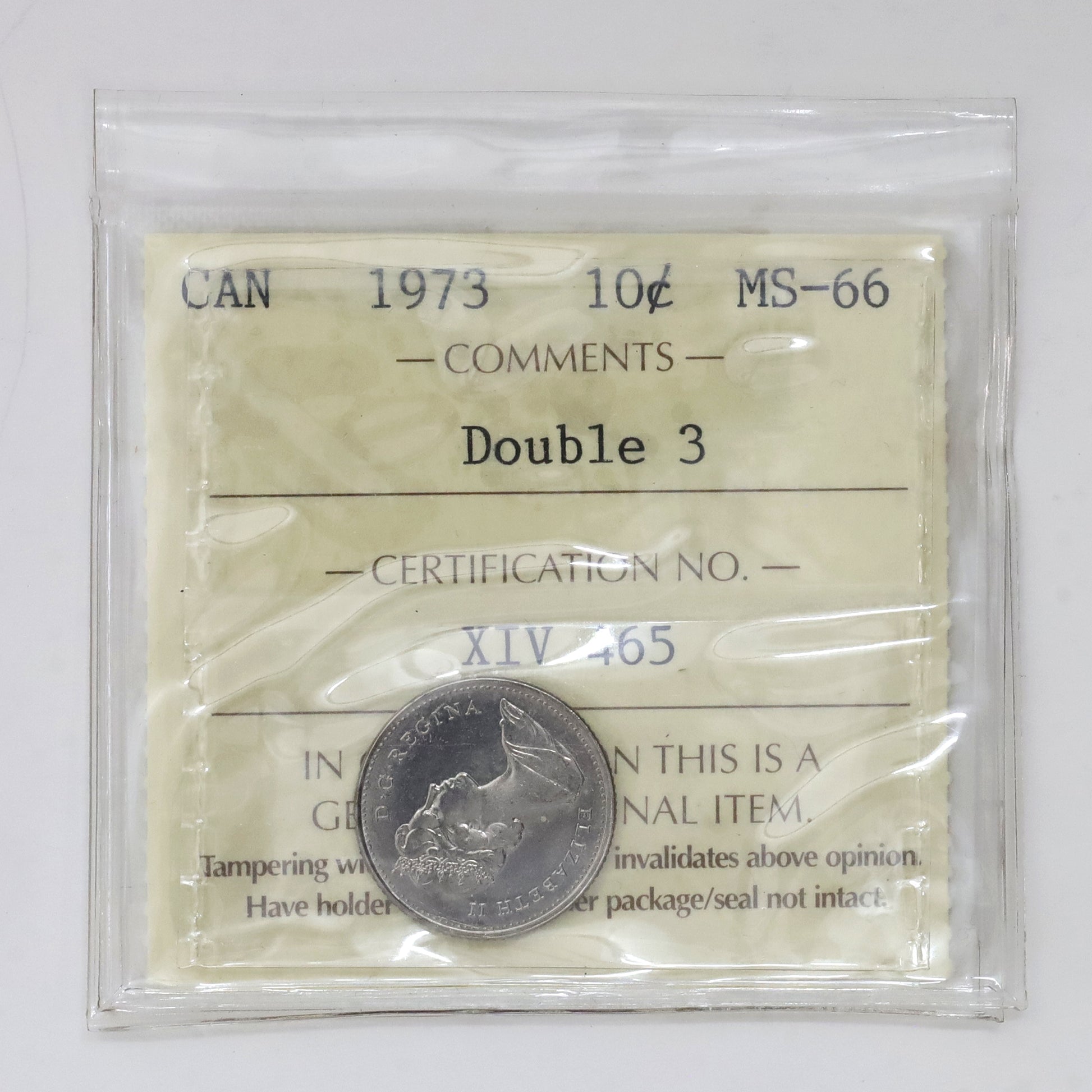 1973 Double 3 Canada 10-cents ICCS Certified MS66