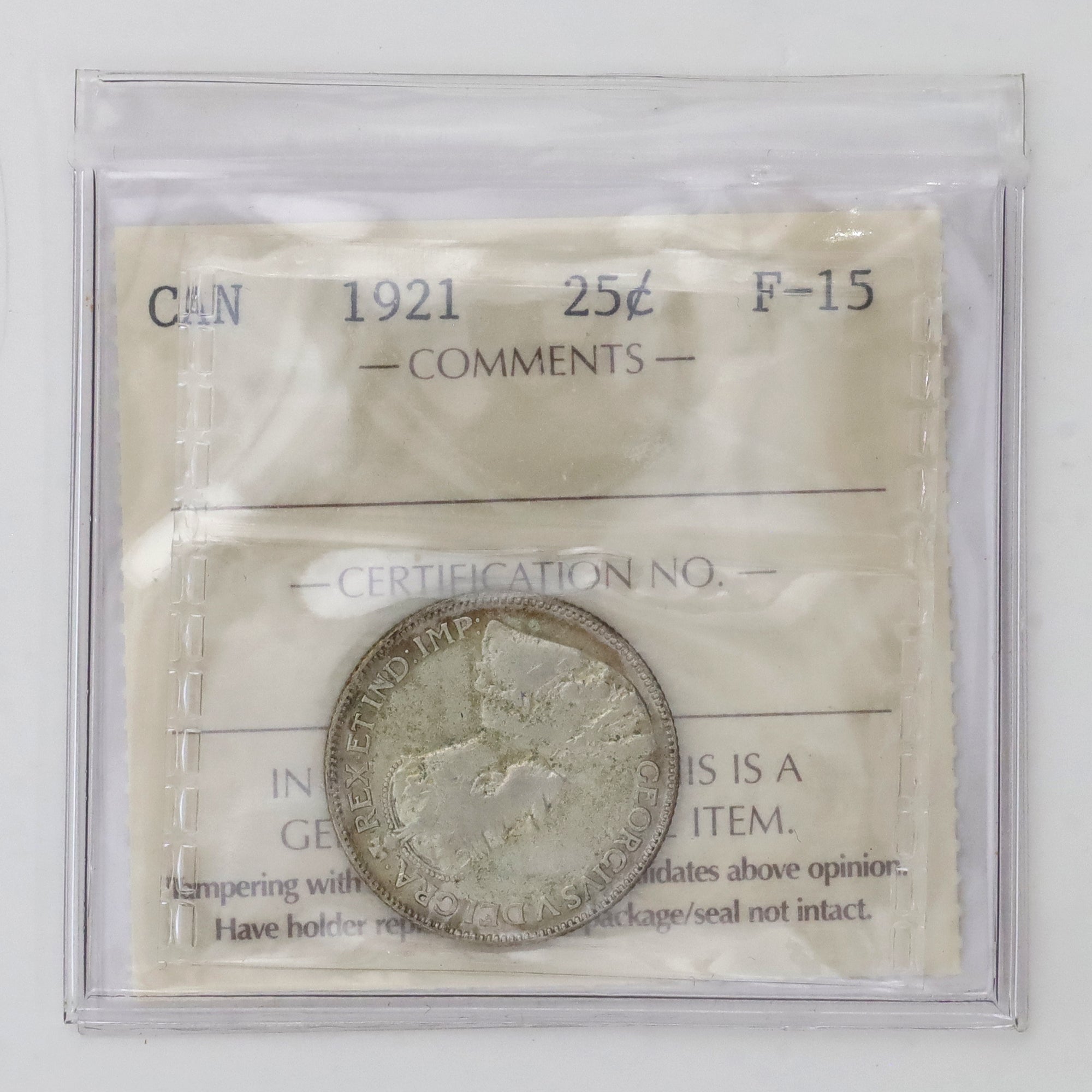 1921 Canada 25-cents ICCS Certified F15 (Toned)