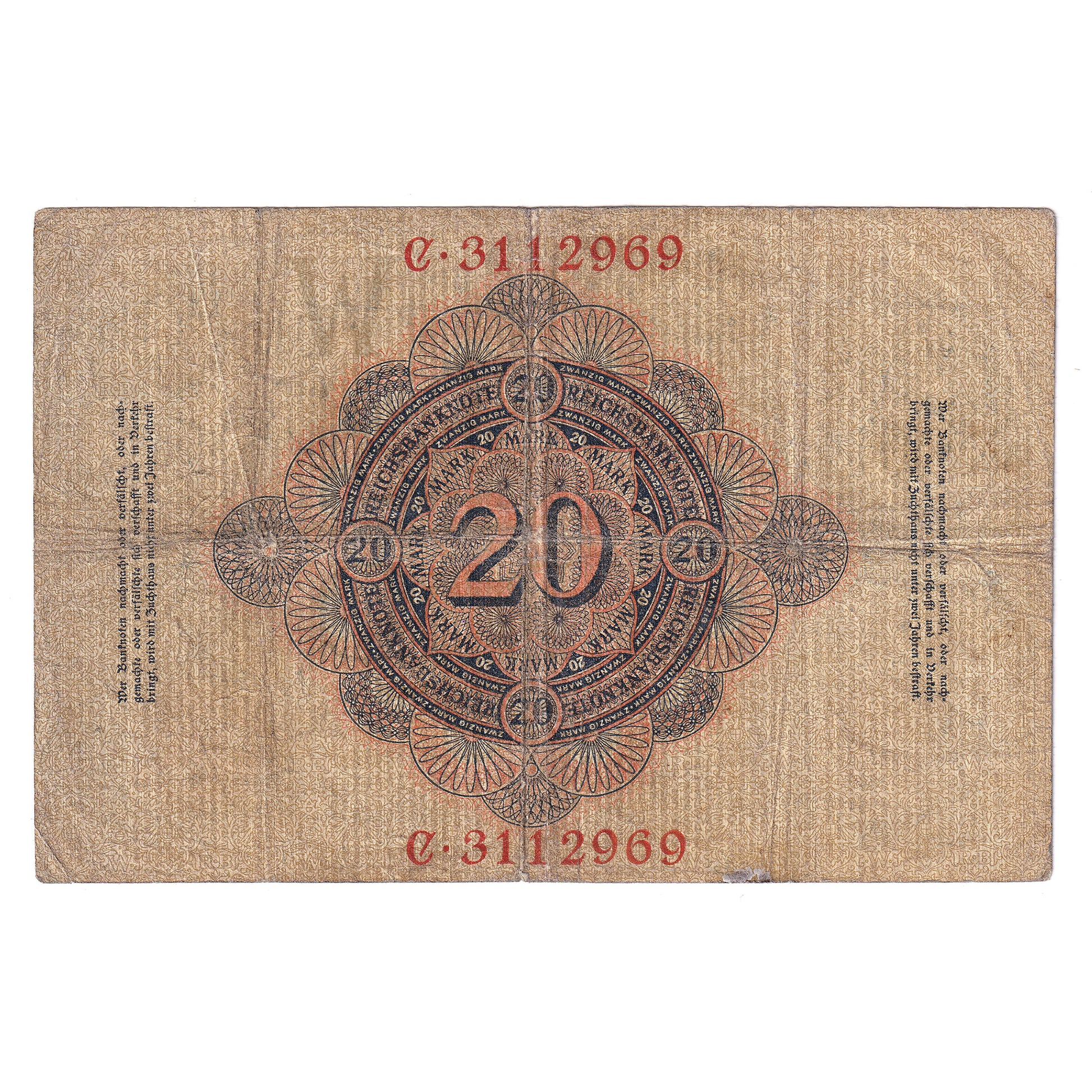 Germany 1908 20 Marks, Pick #31, VG (holes)