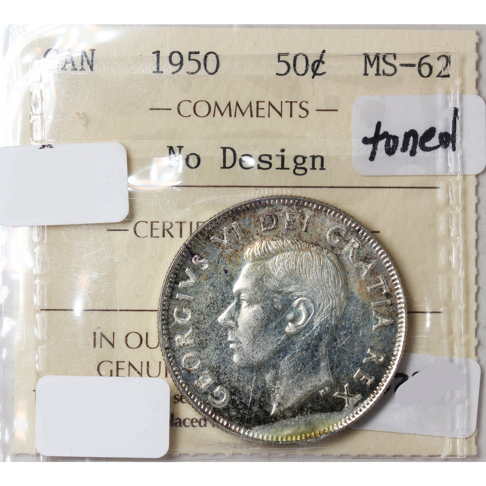 1950 No Design Canada 50-cents ICCS Certified MS62 (Toned)