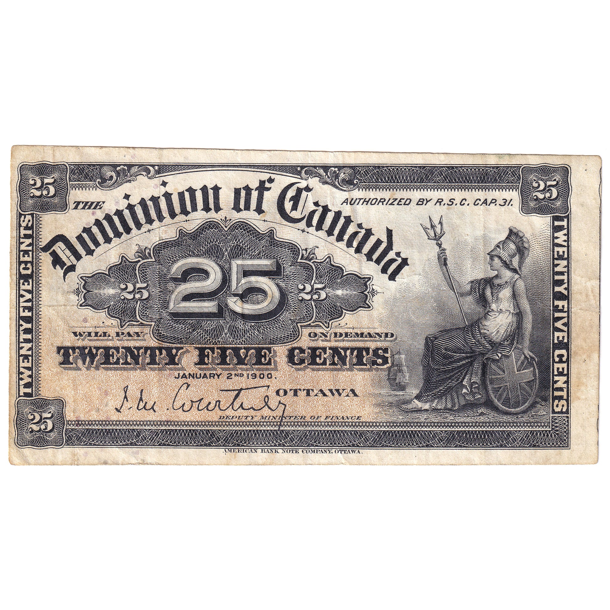 DC-15a-E25a-i 1900 Dominion 25-cent Shinplaster, Courtney, Cut off Size, VF