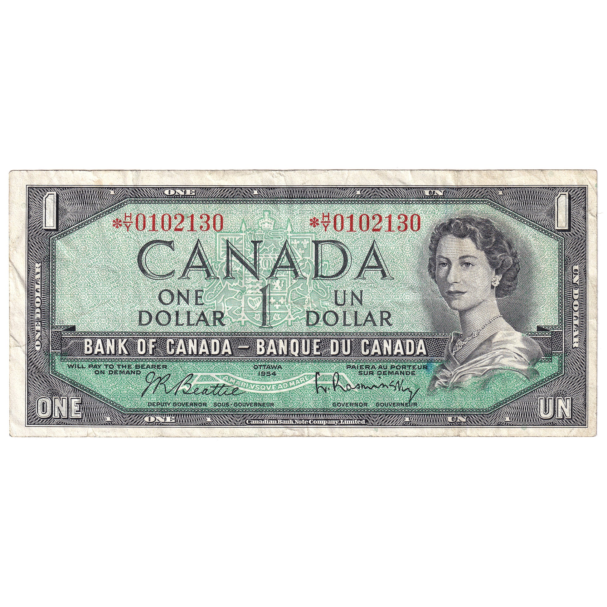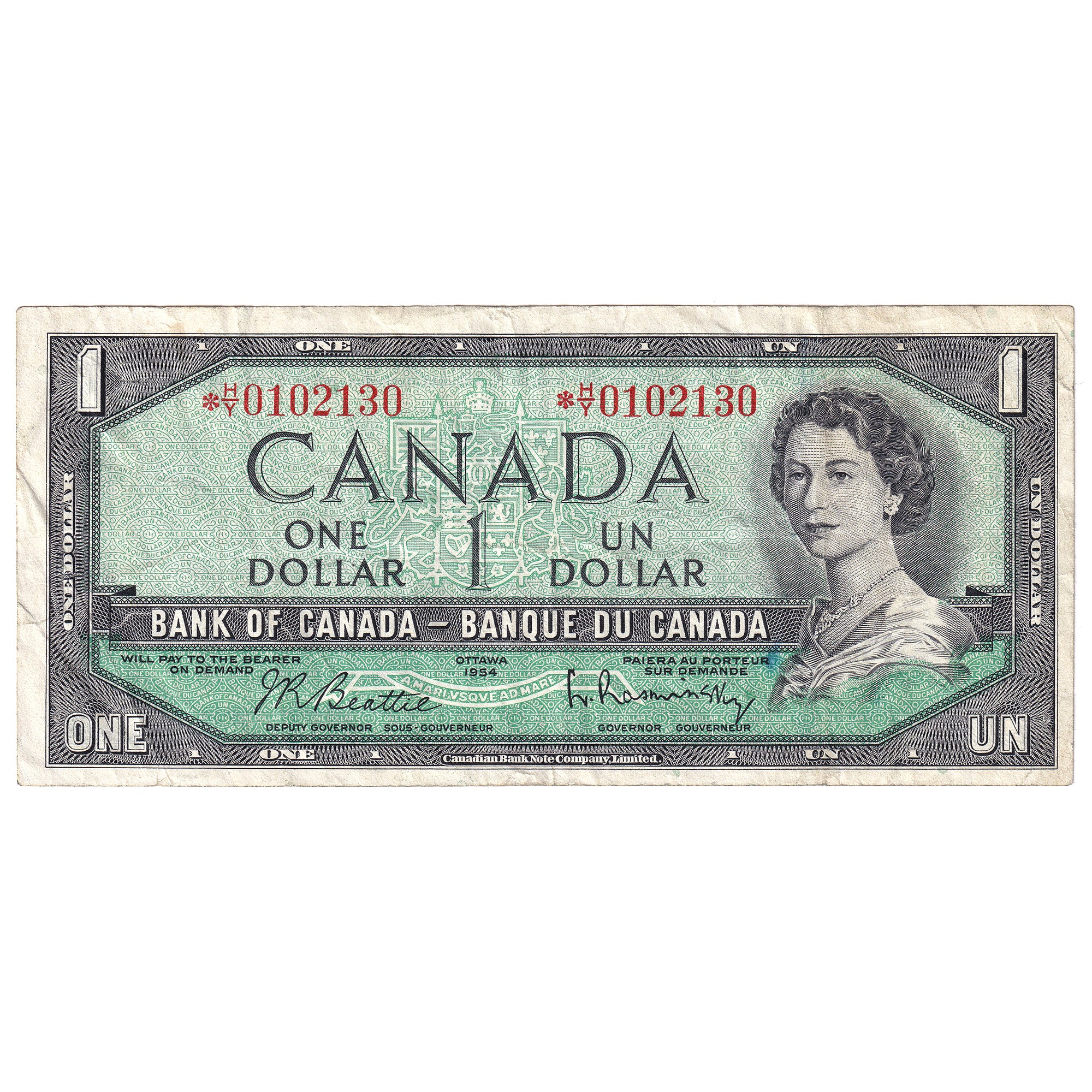 BC-37bA 1954 Canada $1 Beattie-Rasminsky, *H/Y, VF (stain)