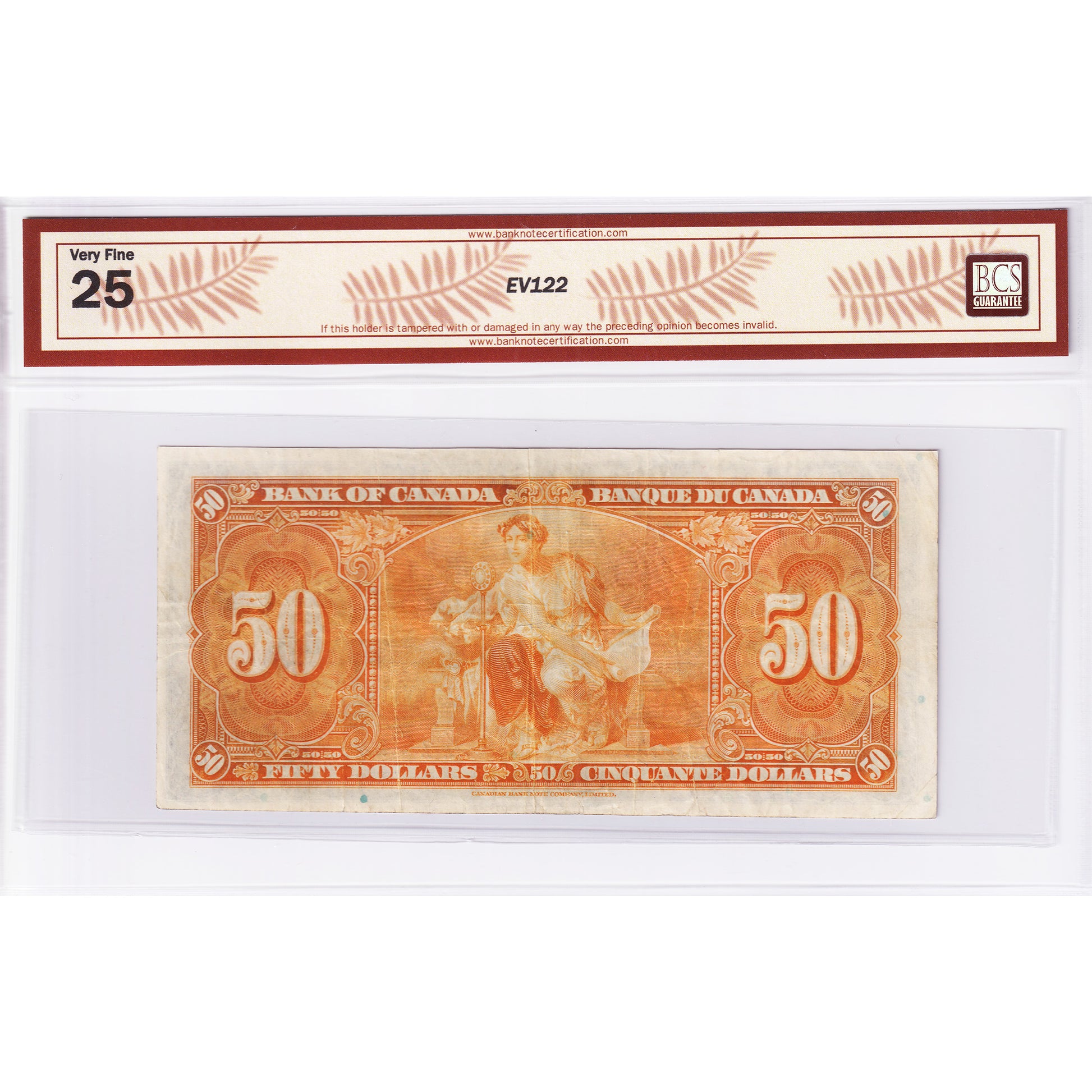 BC-26b 1937 Canada $50 Gordon-Towers, Changeover, B/H BCS Certified VF25 Trimmed