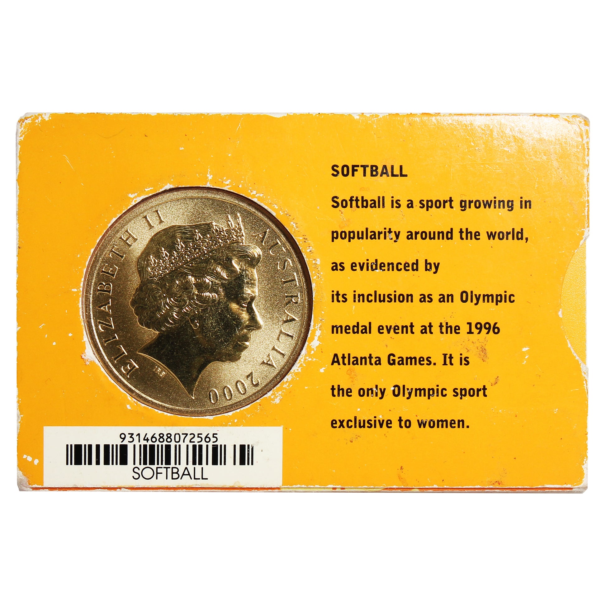 2000 Sydney, Australia $5 Olympics Softball Coin In Card (Wear)