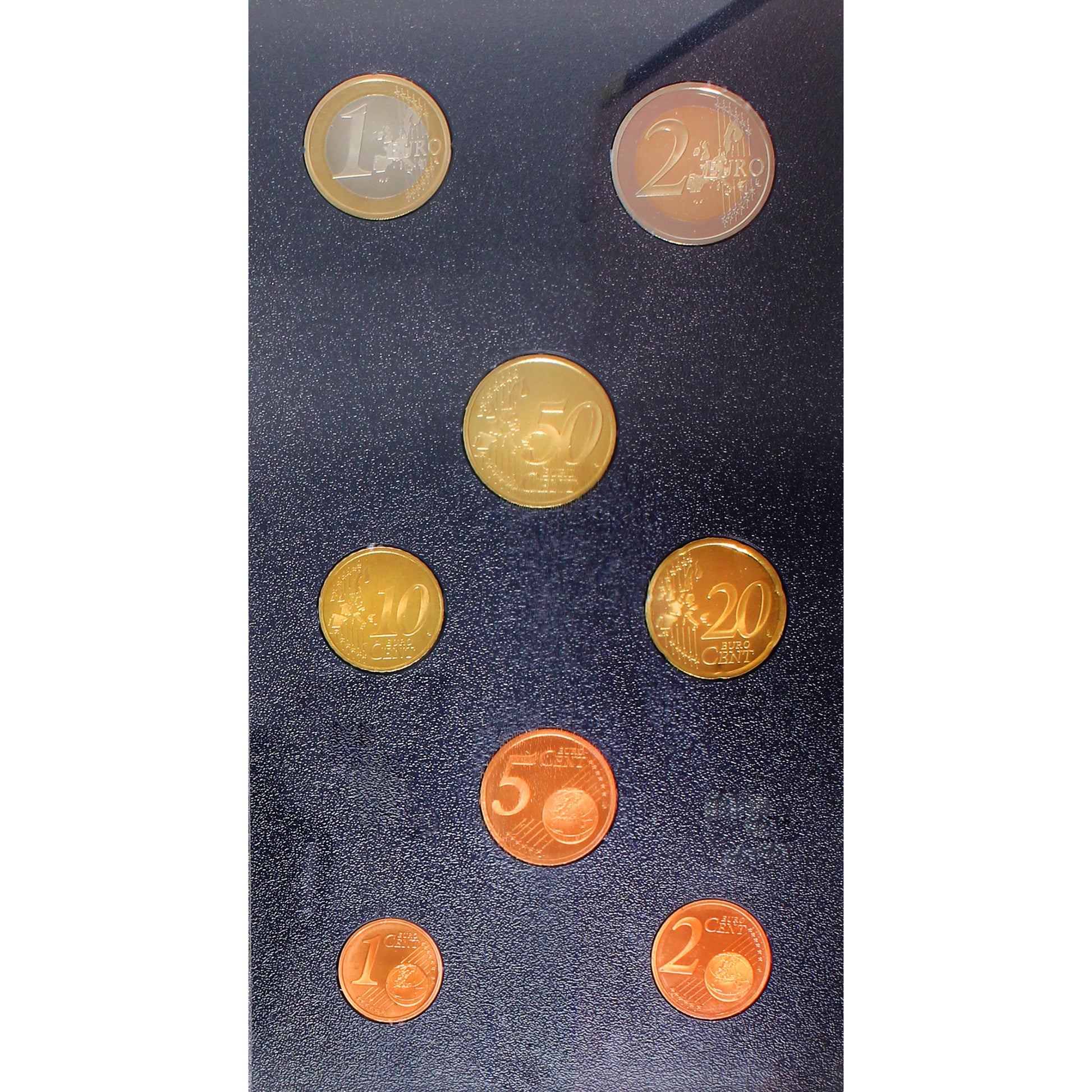 The 2001 France 8-Coin Proof Set includes the 1-cent, 2-cents, 5-cents, 10-cents, 20-cents, 50-cents, 1 Euro, and 2 Euro coins. The coins are housed in a clear plastic display holder within a book-style blue case and comes with a Certificate of Authenticity (CoA). Please note the plastic display holder shows some scratches and scuff marks, some of the coins show light toning and the outer slipcover shows wear and residue.