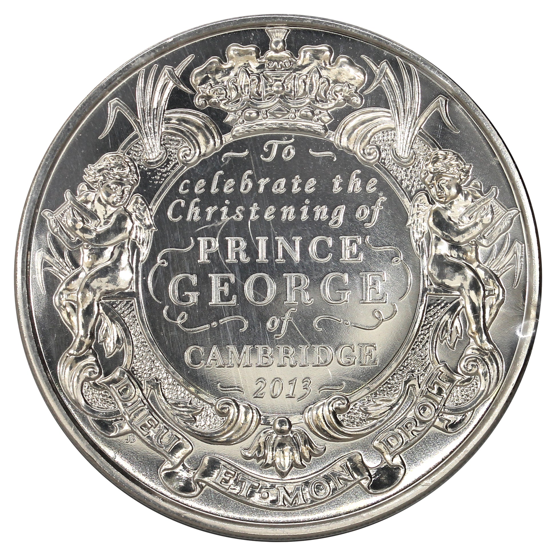 Celebrating the christening of Prince William and Catherine Middleton's first son and heir to the throne, this commemorative coin features cherubs and roses with a Baroque-style cartouche and inscription. The reverse reads "To celebrate the Christening of PRINCE GEORGE of CAMBRIDGE 2013." Comes packaged in a card and sleeve, with an elegant information booklet.
