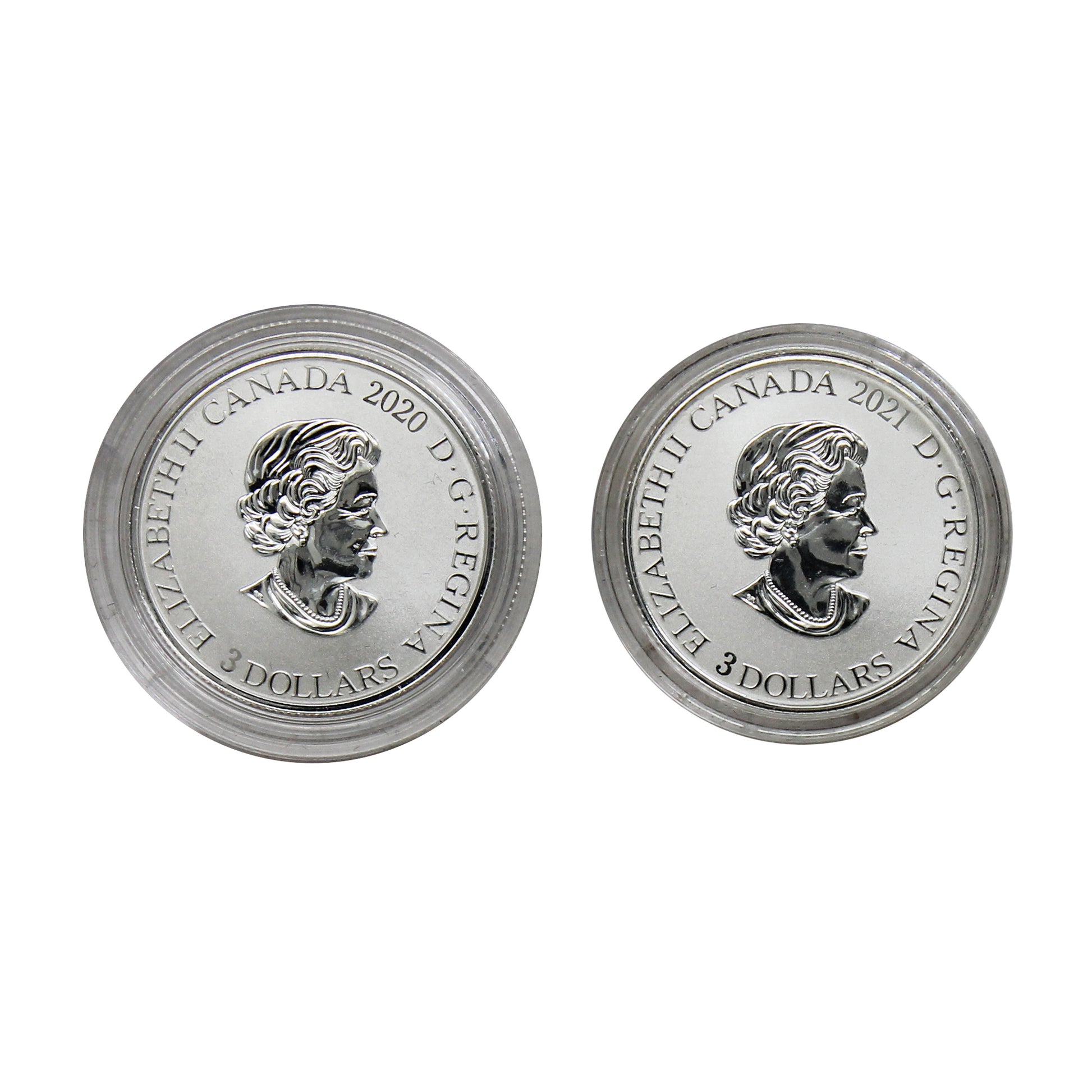 Pair of 2020 & 2021 $3 Floral Emblems of Canada Fine Silver Coins (Coins Only) No Tax