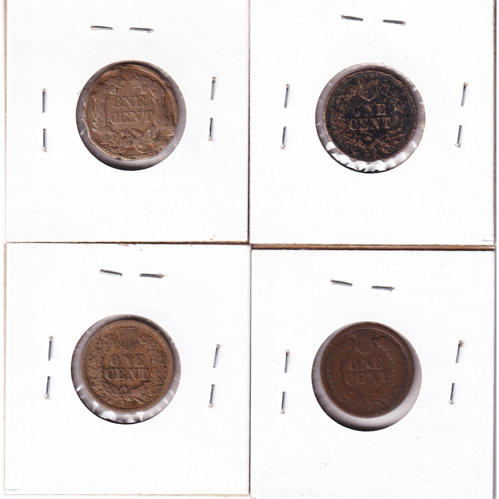 Lot of 4x 1858-1878 USA Cent, G to VF, 4Pcs. (Impaired)