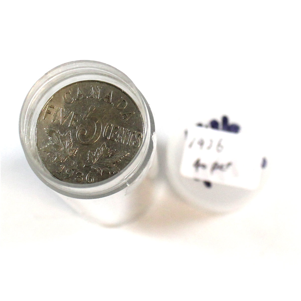 1936 Canada George V 5-cents Roll of 40Pcs, Circulated Condition. Roll may be contained by a plastic tube or baggie, paper wrap, or other means. Image is an example of what you will receive. Please note the lot contains approximately 40 coins; actual quantity may vary slightly