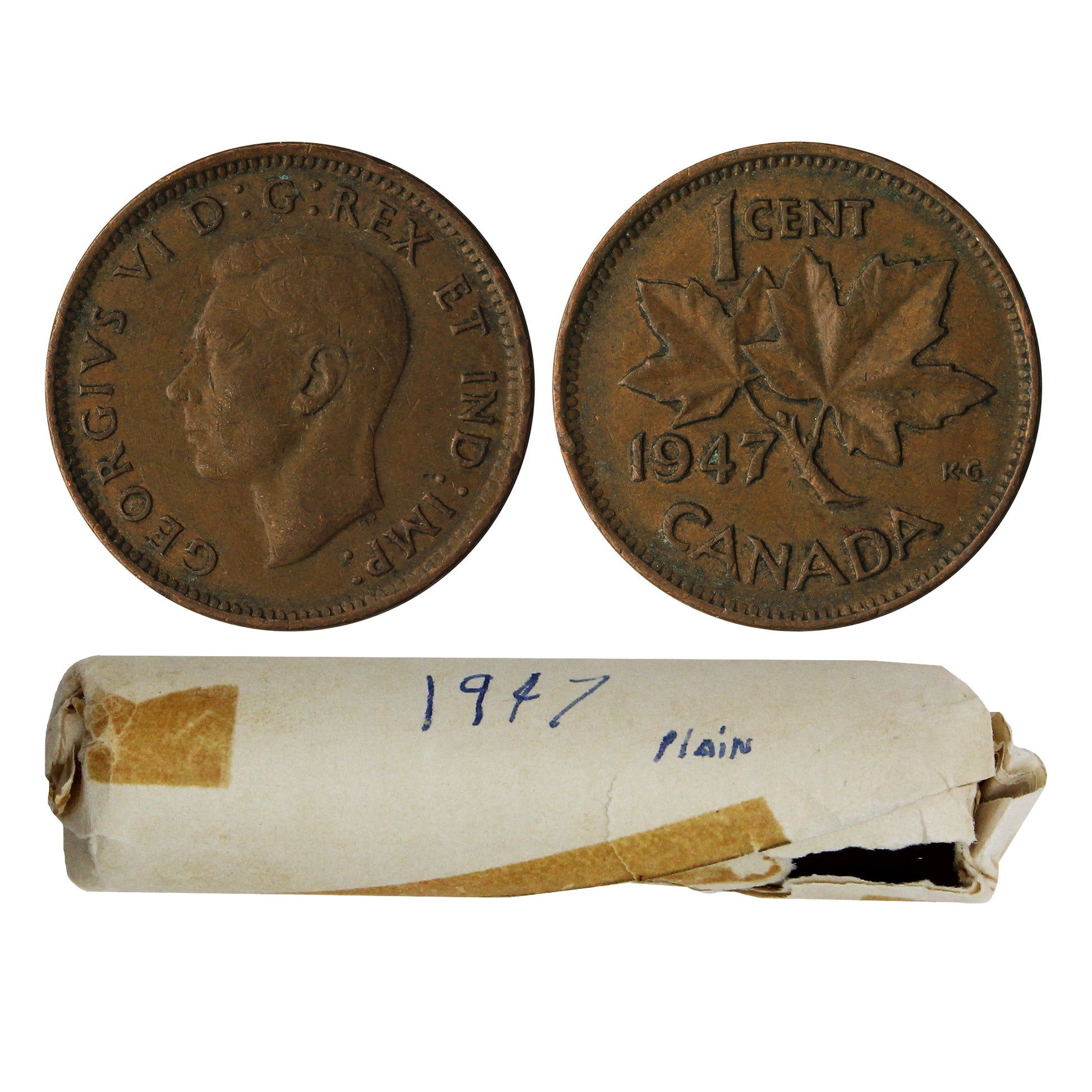 Lot of 50x 1947 Canada George VI 1-cents, Circulated to Average Condition, 50Pcs. May have corrosion. May be contained in a paper roll, a plastic tube or baggie, or by other means. Image is an example of what you will receive.