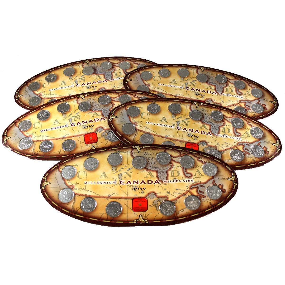 Lot of 5x 1999 Canada 25-cent Millennium Sets in Oval Boards, 5Pcs (Impaired)