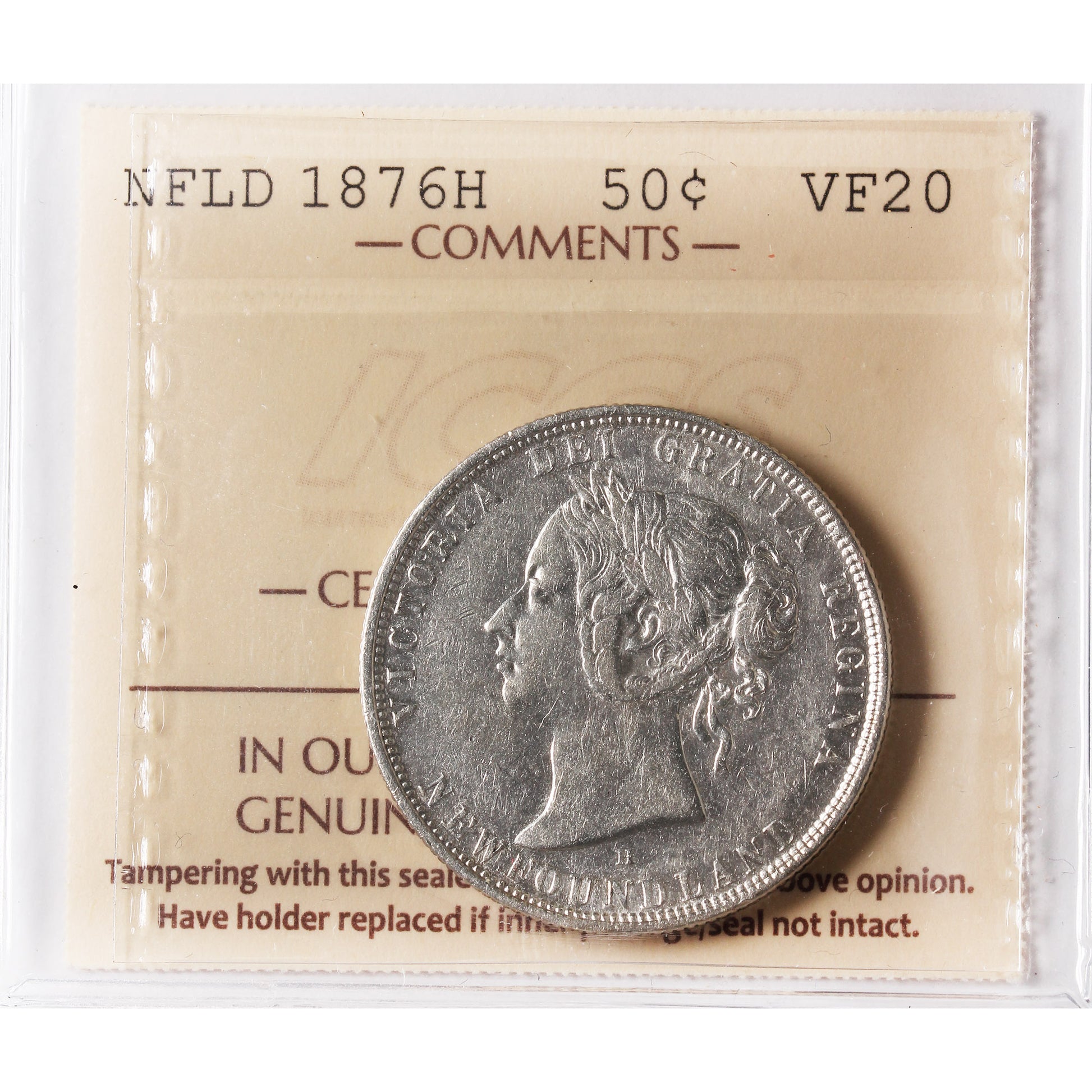 1876H Newfoundland 50-cents ICCS Certified VF-20
