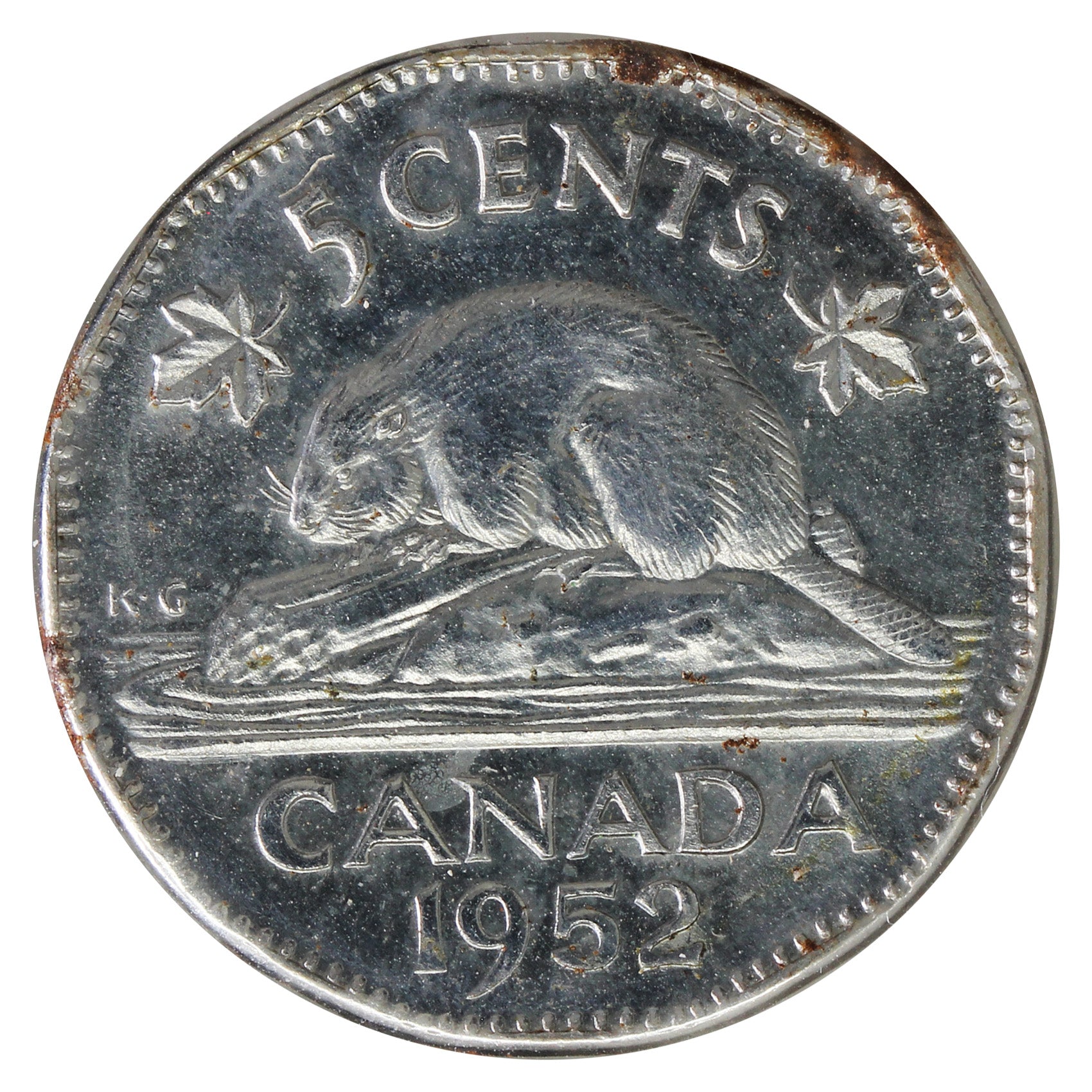 1952 Canada 5-cents UNC+ (MS62) Scratched, Cleaned or Impaired