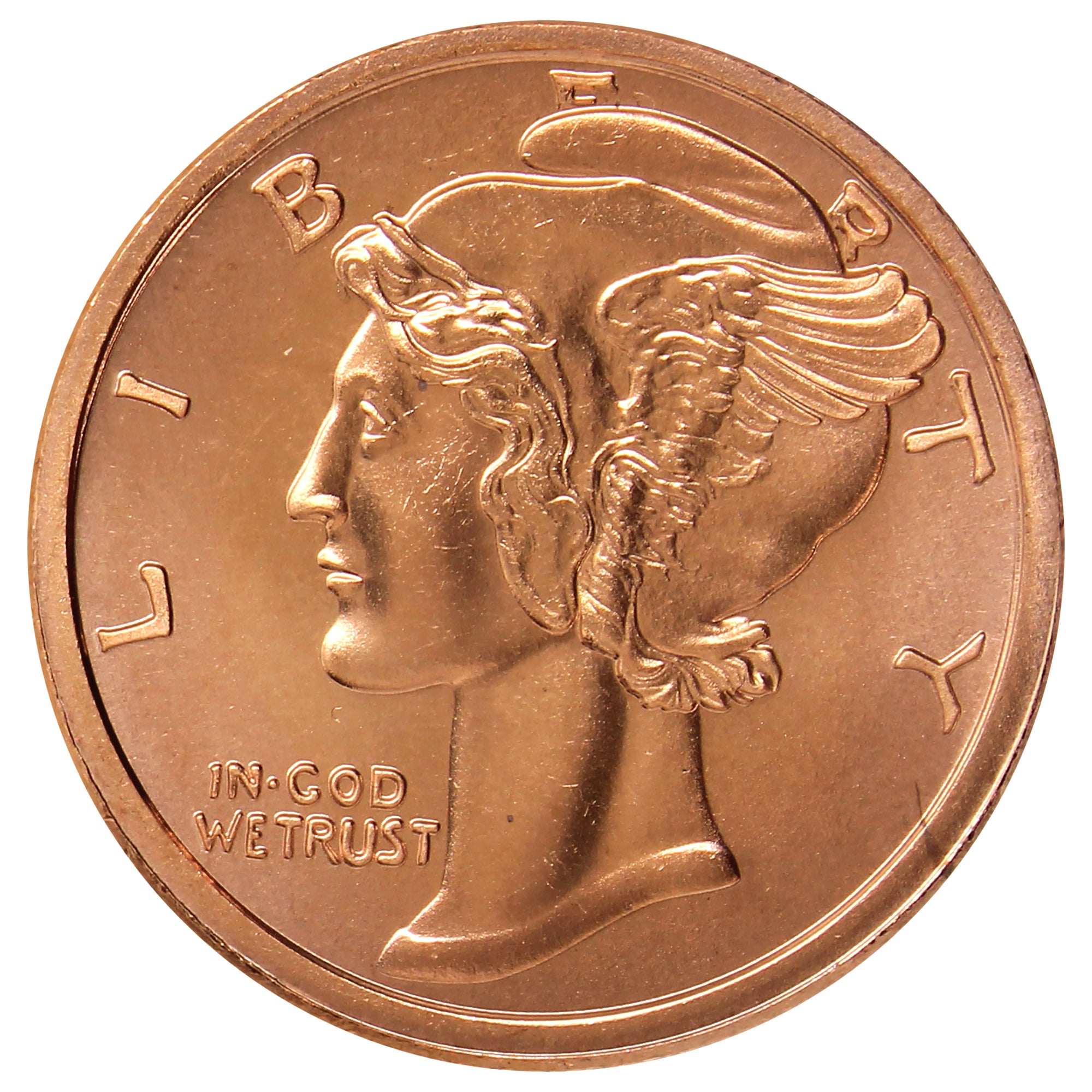 Pure Copper 1oz. .999 Fine - Mercury Dime