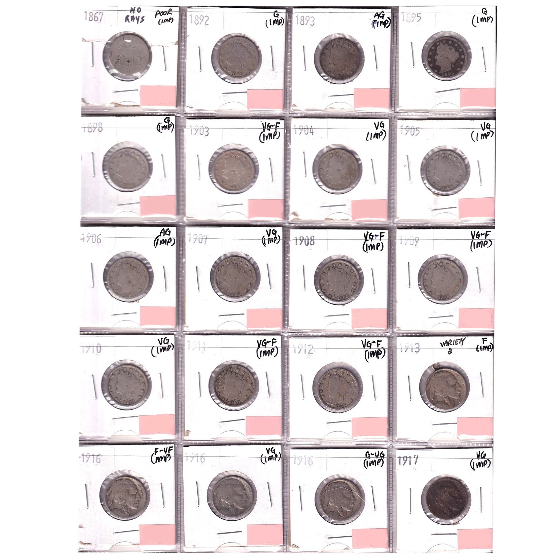 Group Lot of 20x 1867-1917 USA Nickels Poor to VG-F, 20pcs (Impaired)