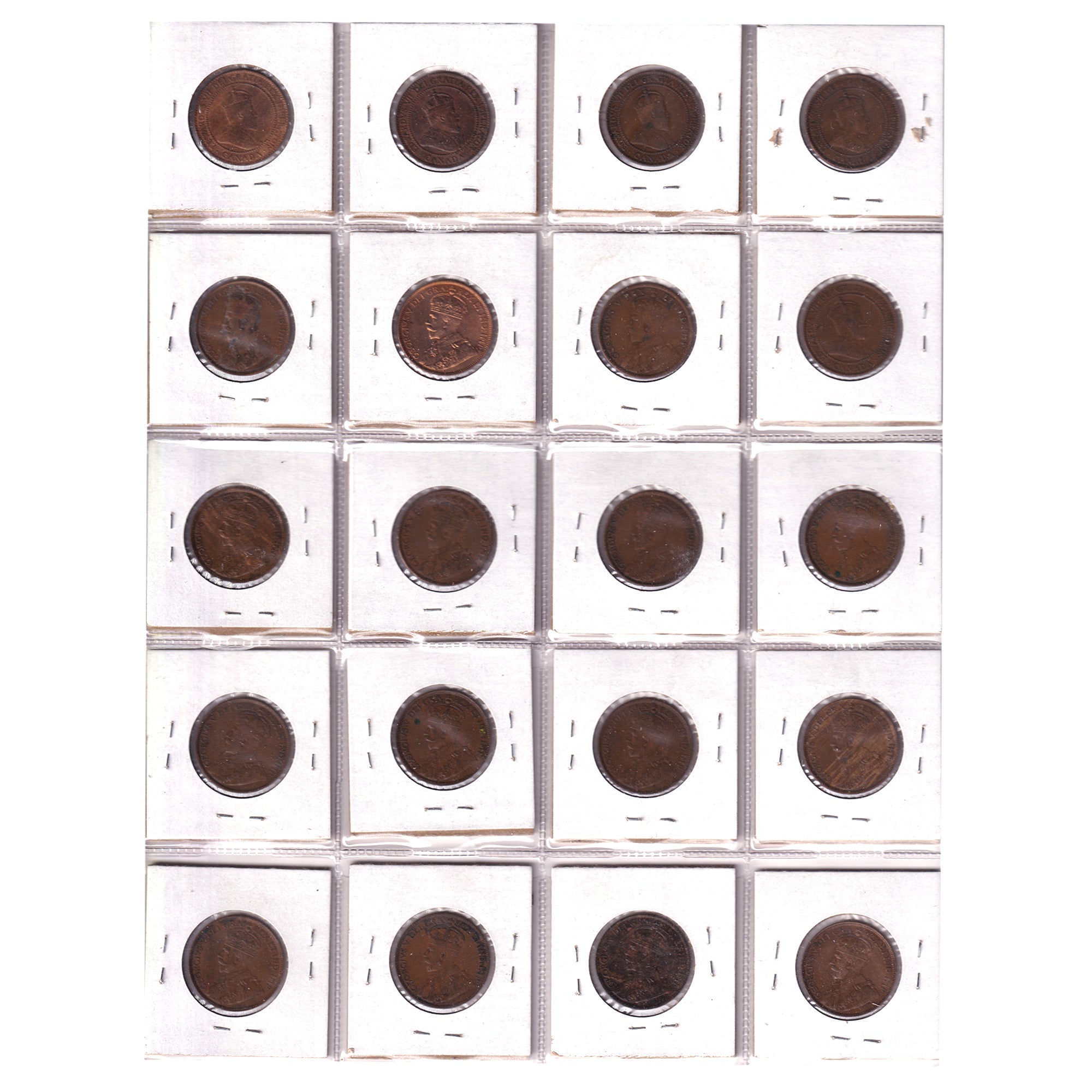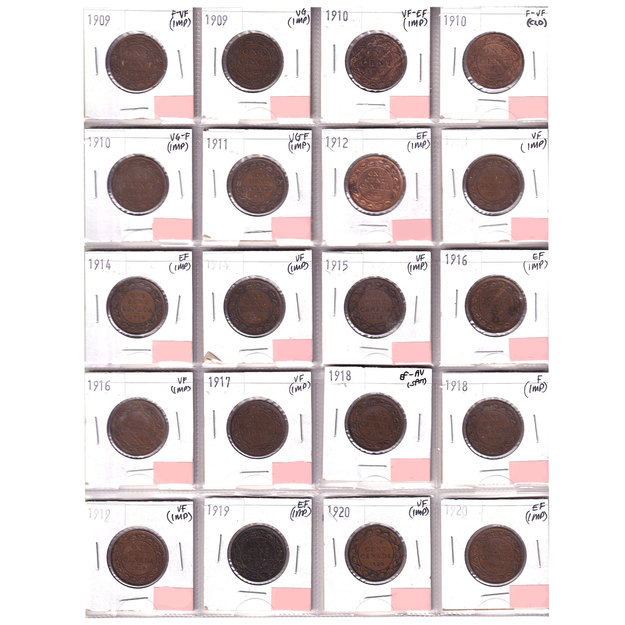 Group Lot of 20x 1909-1920 Canada 1-cent VG to EF-AU, 20pcs (Impaired)