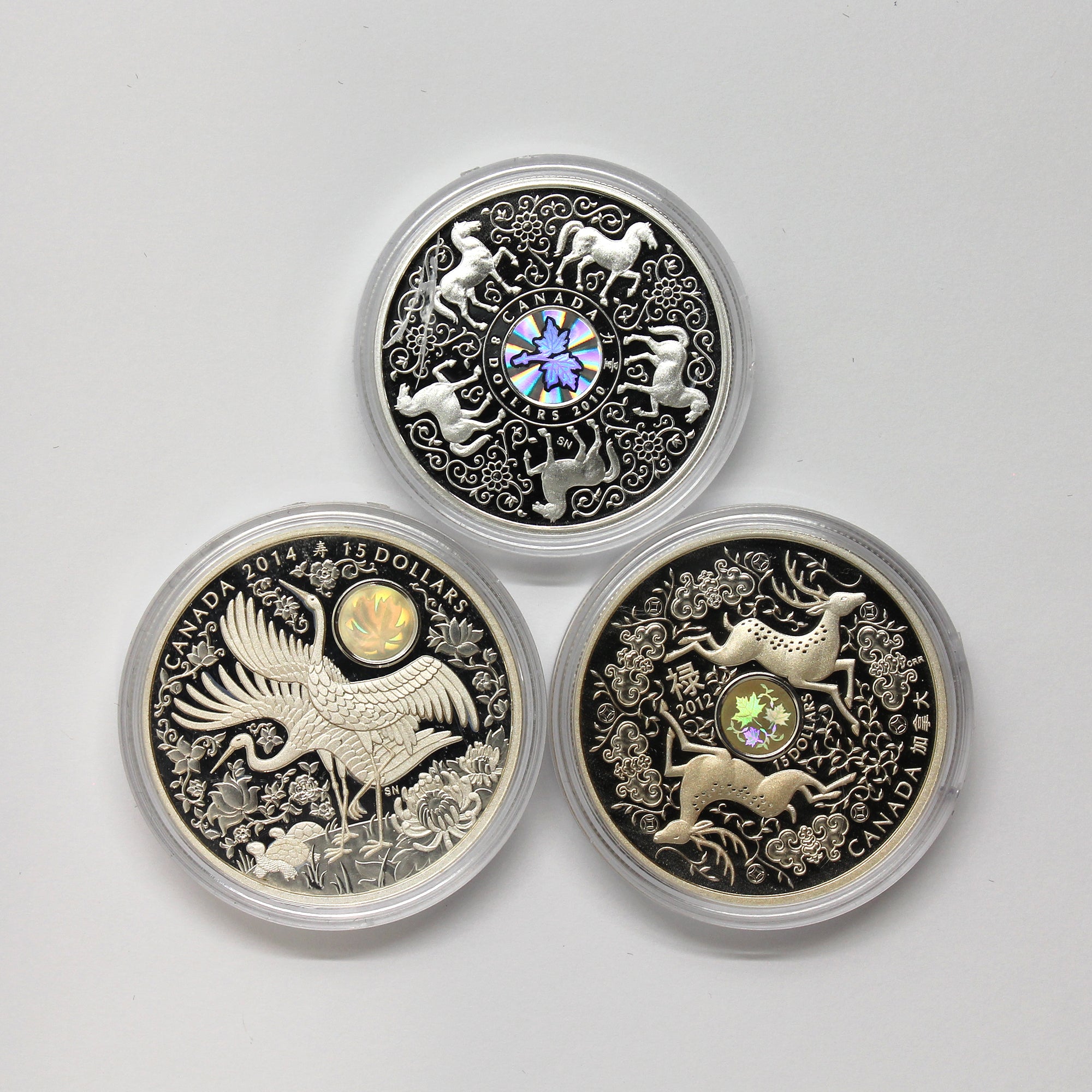 Lot of 3x 2010-2014 Canada Hologram Maple Sterling Silver Coins, 3pcs (Coins Only) (Issues)