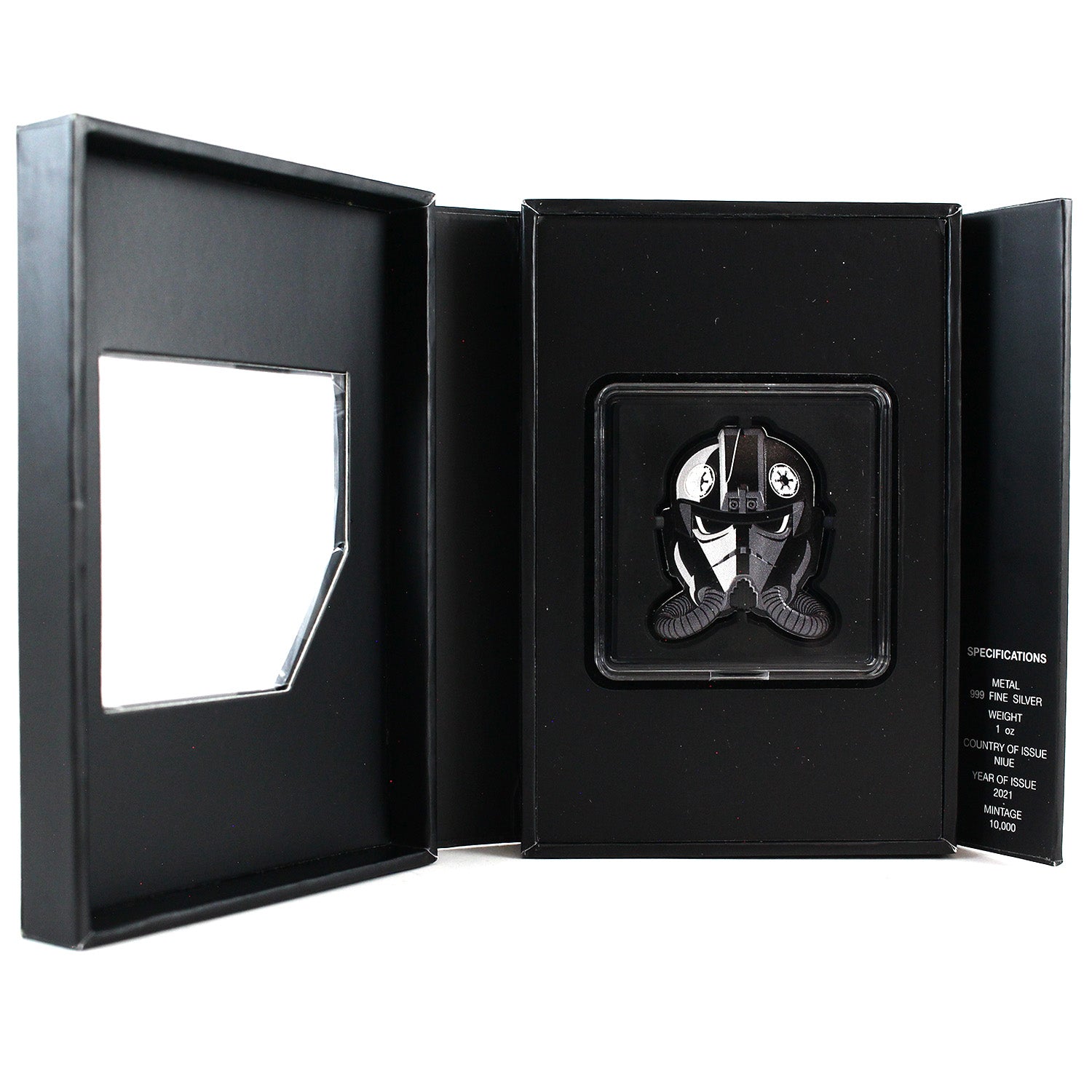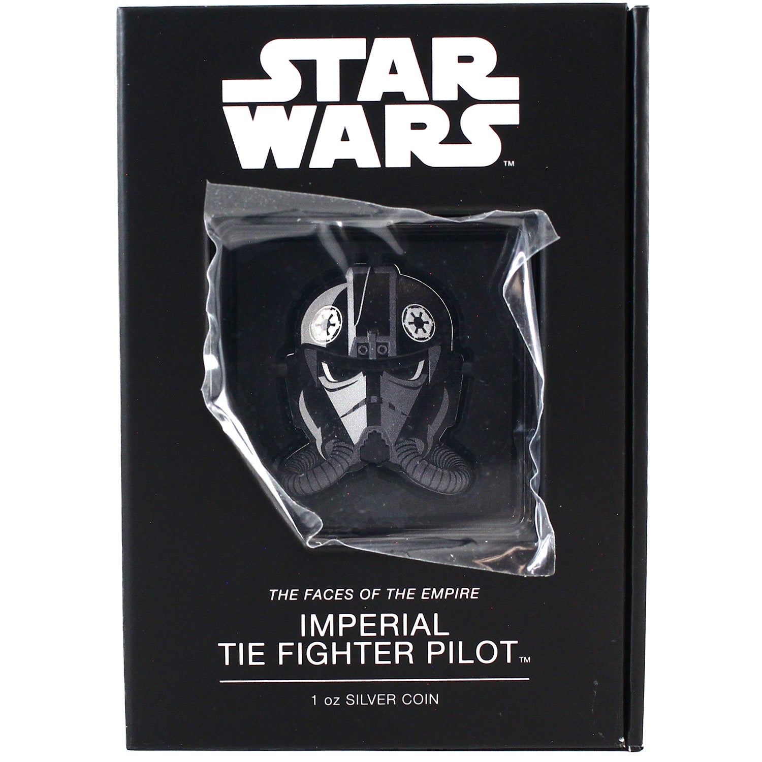 One of the releases in the Star Wars: Faces of the Empire Coin Collection, this uniquely shaped 1 oz fine silver coin replicates the face of an Imperial Tie Fighter Pilot. Crafted to follow the contours of his helmet, the design features enhanced relief for a striking 3D effect. The obverse showcases the effigy of Her Majesty Queen Elizabeth II. Housed in a sleek, Star Wars-branded case with a display window and comes in its original packaging.