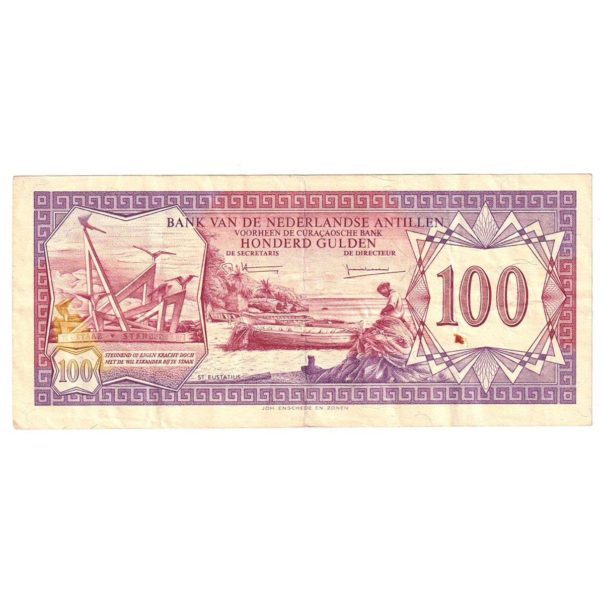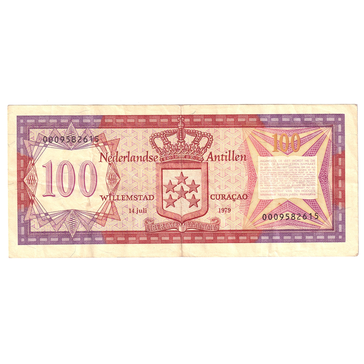 Netherlands Antilles Note, 1979 100 Gulden, Pick #19a, VF (Stain)