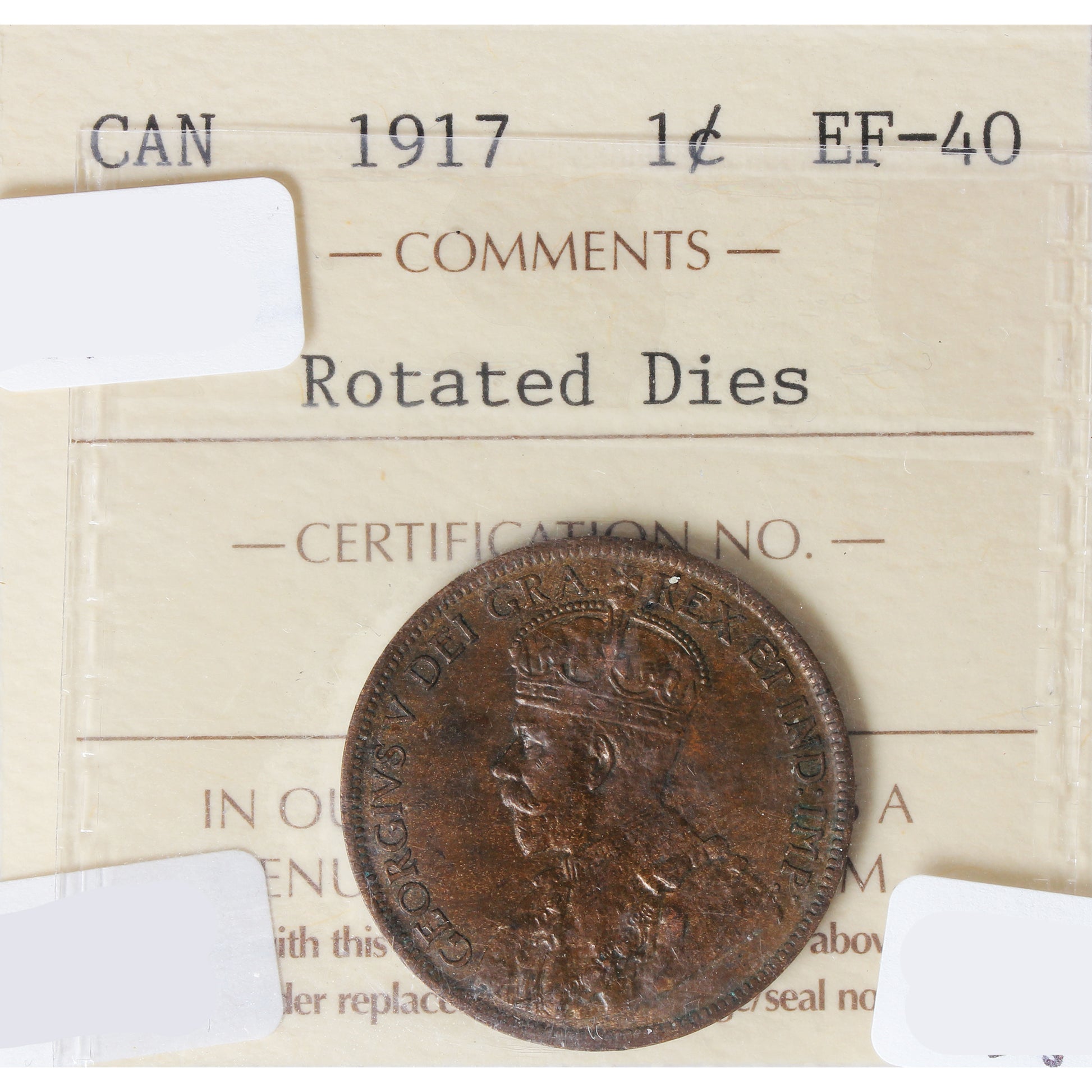 1917 Rotated Dies Canada 1-cent ICCS Certified EF40