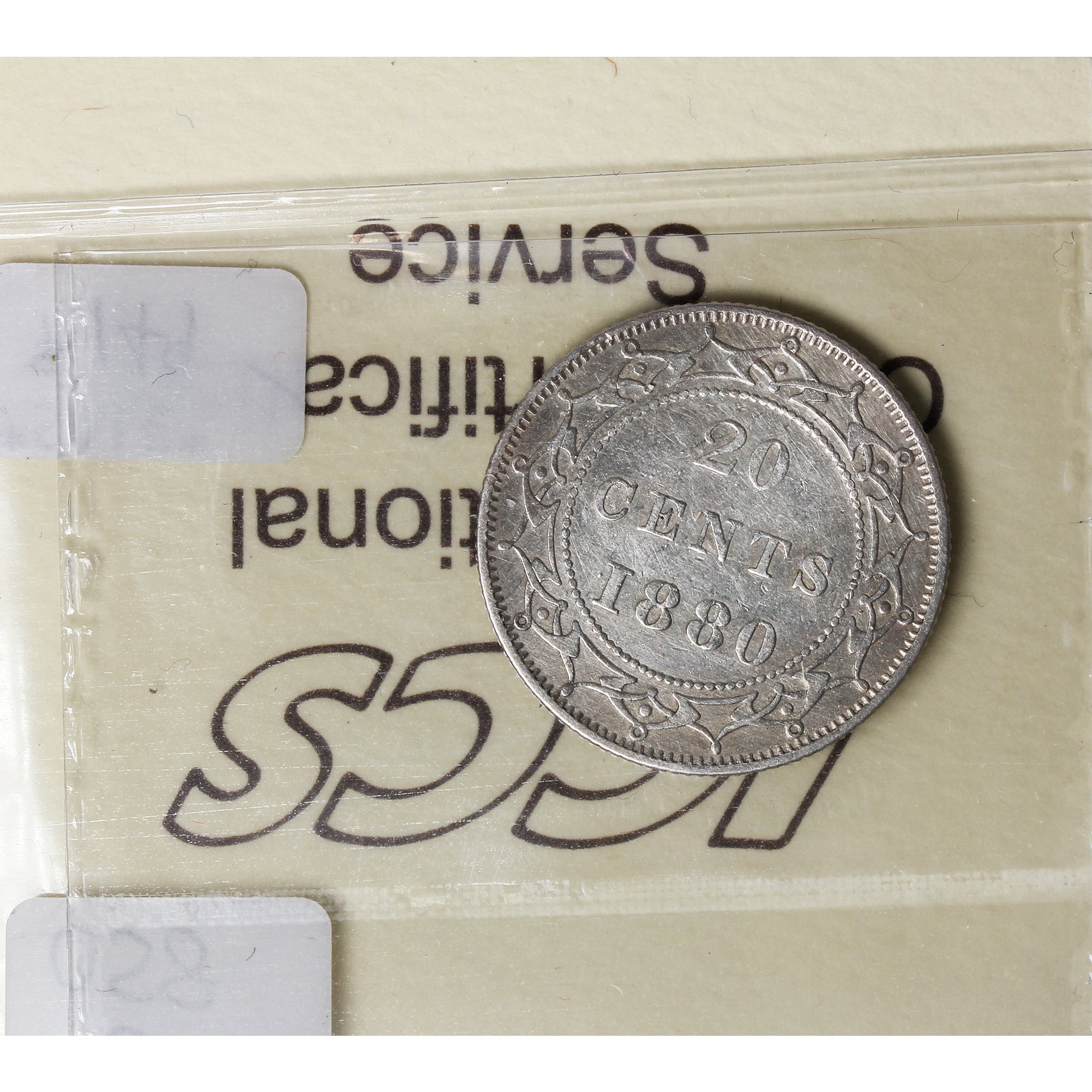 1880 Newfoundland 20-cents ICCS Certified VF30 Cleaned