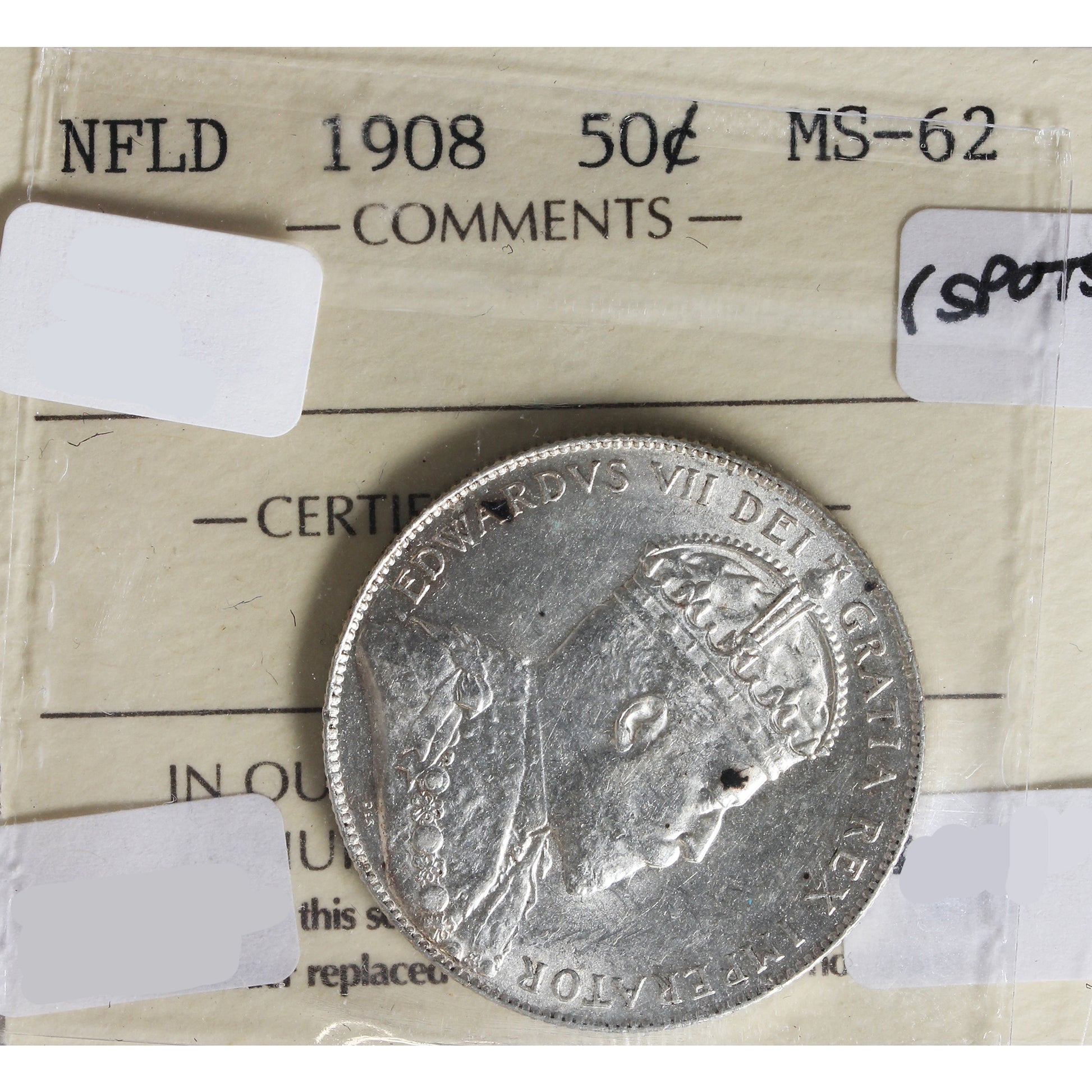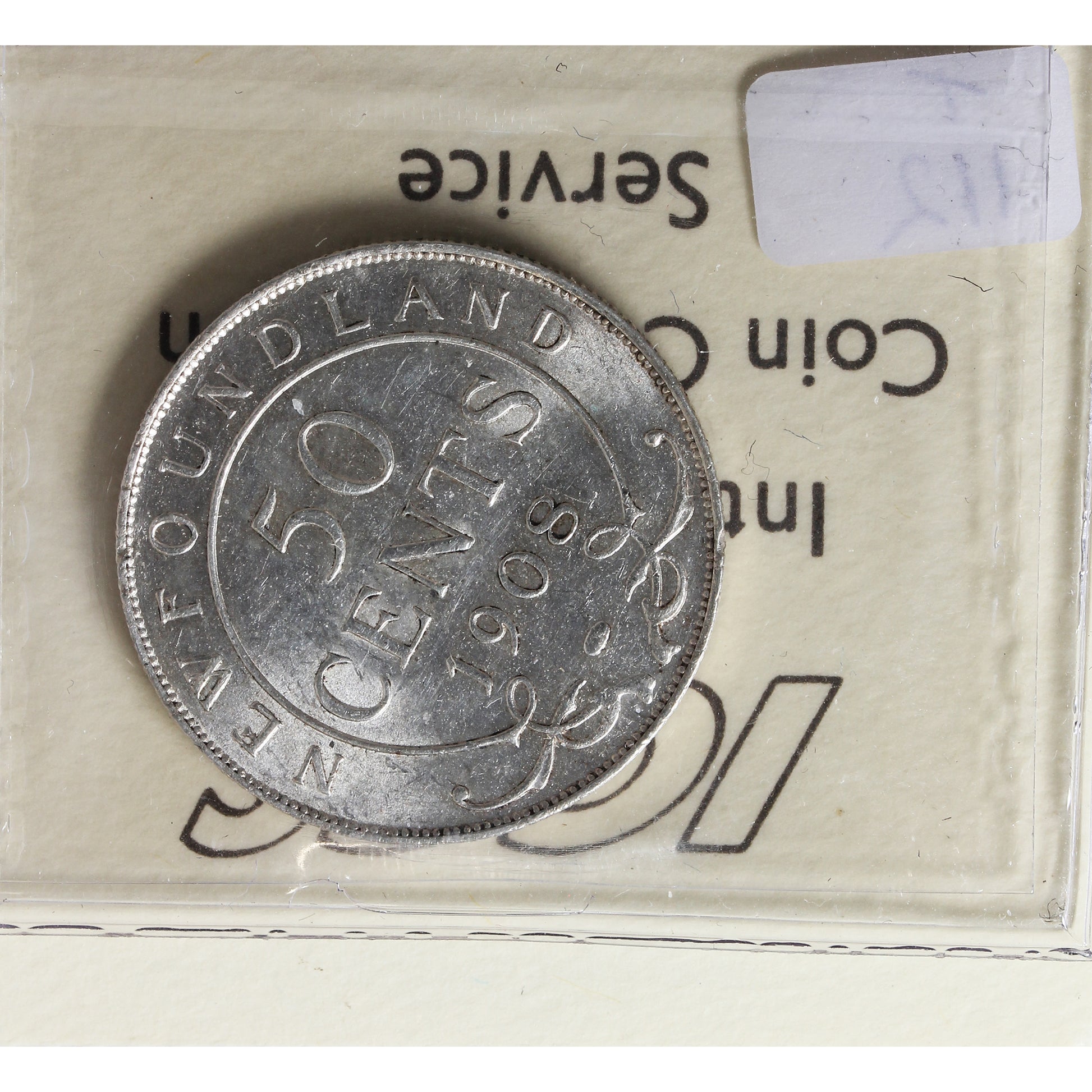 1908 Newfoundland 50-cents ICCS Cert. MS62 (Spots)