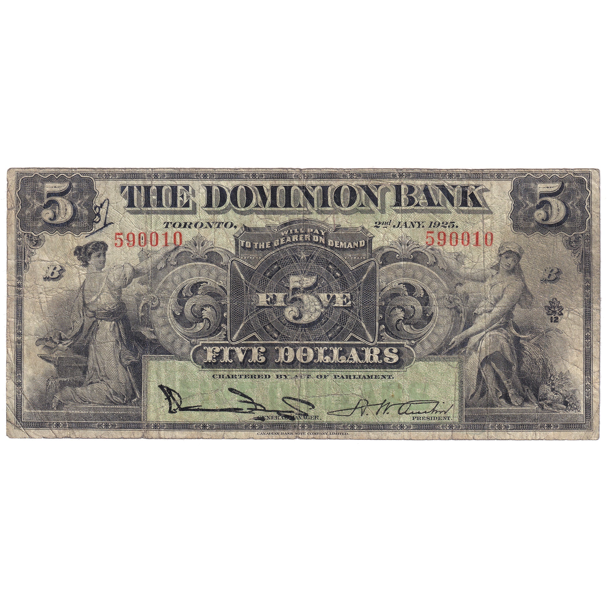 220-16-14 1925 Dominion $5 Bogert-Austin, VG (writing)