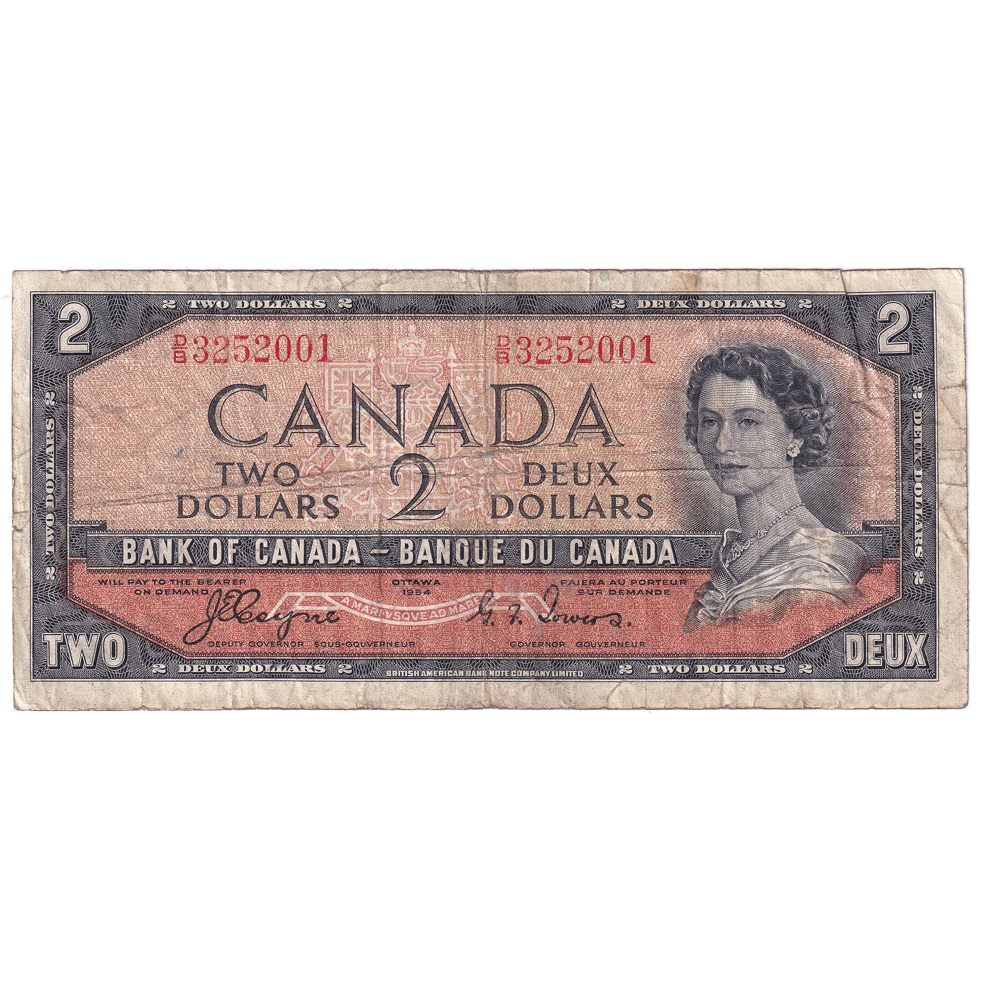 BC-30a 1954 Canada $2 Coyne-Towers, Devil's Face, D/B, F (pen)