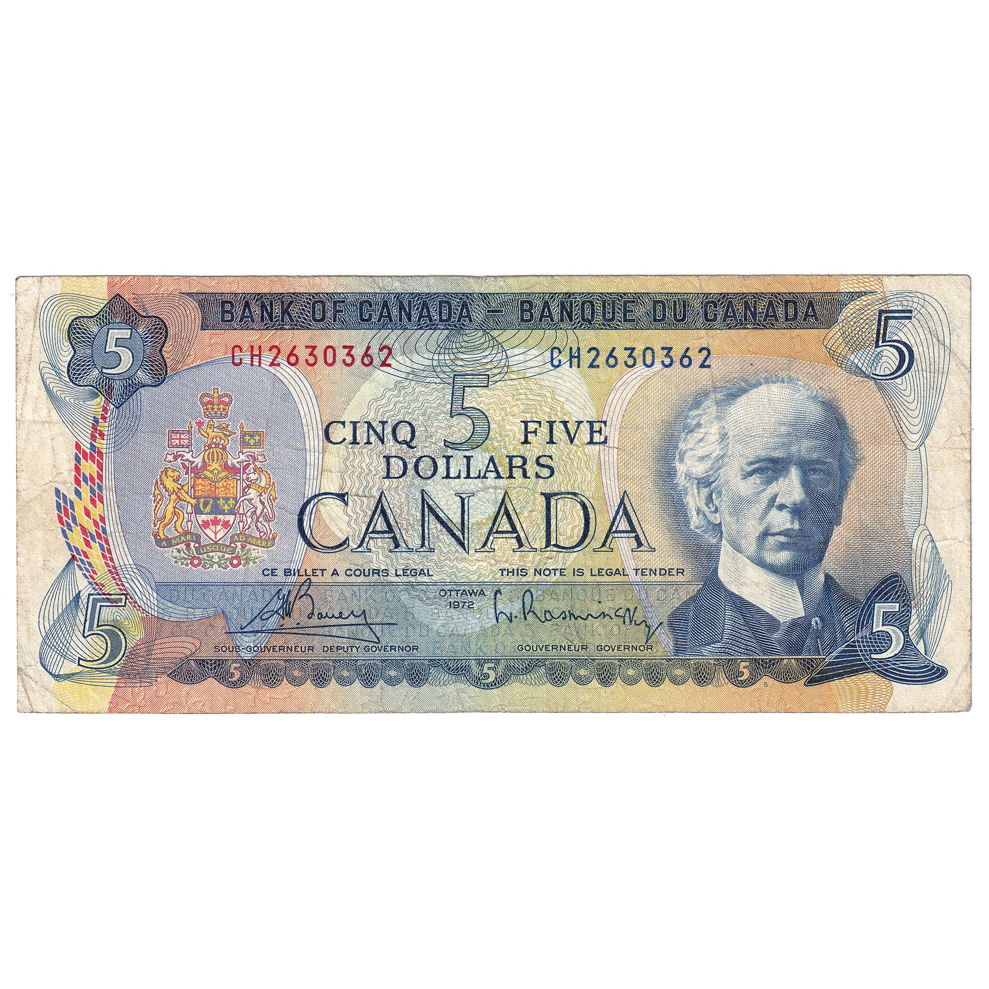 BC-48a-N1-iii 1972 Canada $5 Bouey-Rasminsky, 4 Digit RADAR CH2630362, Circ.